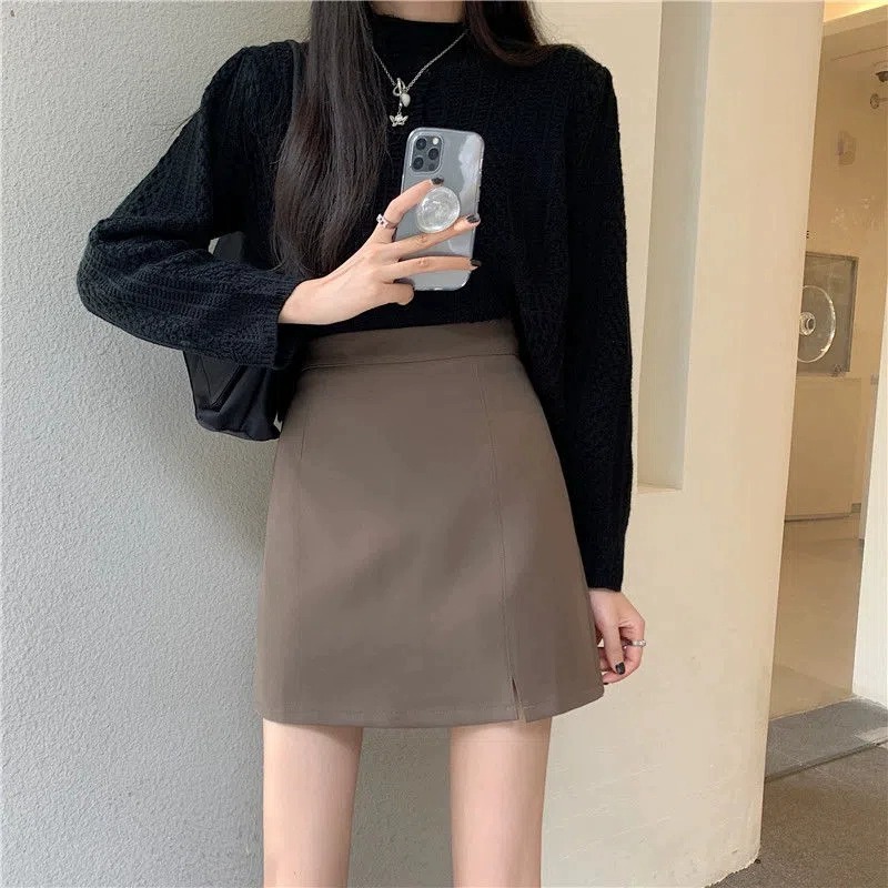 侧开小个子包臀秋冬季西装高腰开叉半身裙面料垂坠感裙a字裙短裙