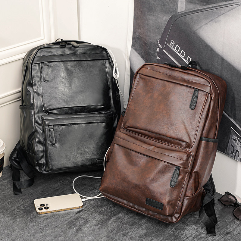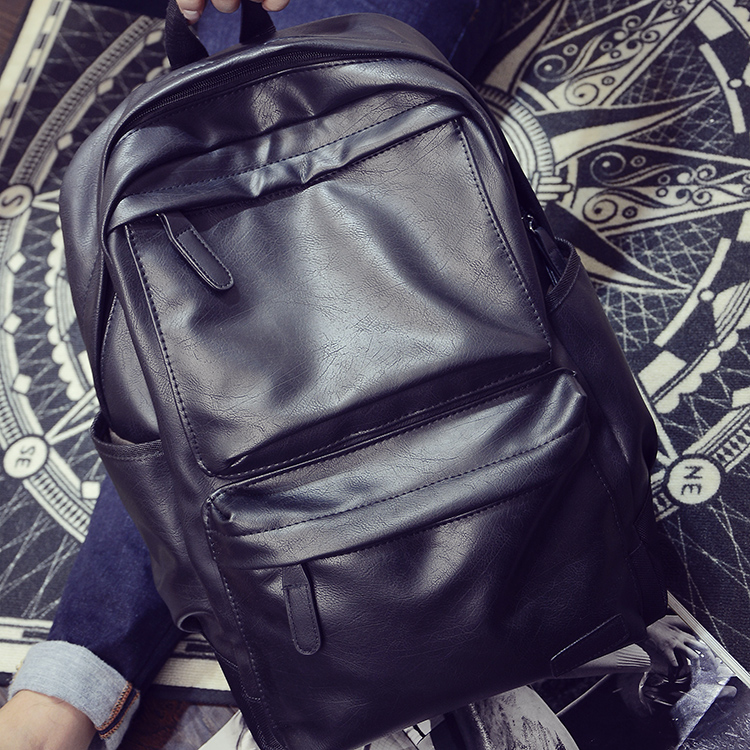 潮流新款简约潮男街头皮质双肩包 时尚学院风学生书包双肩包潮包