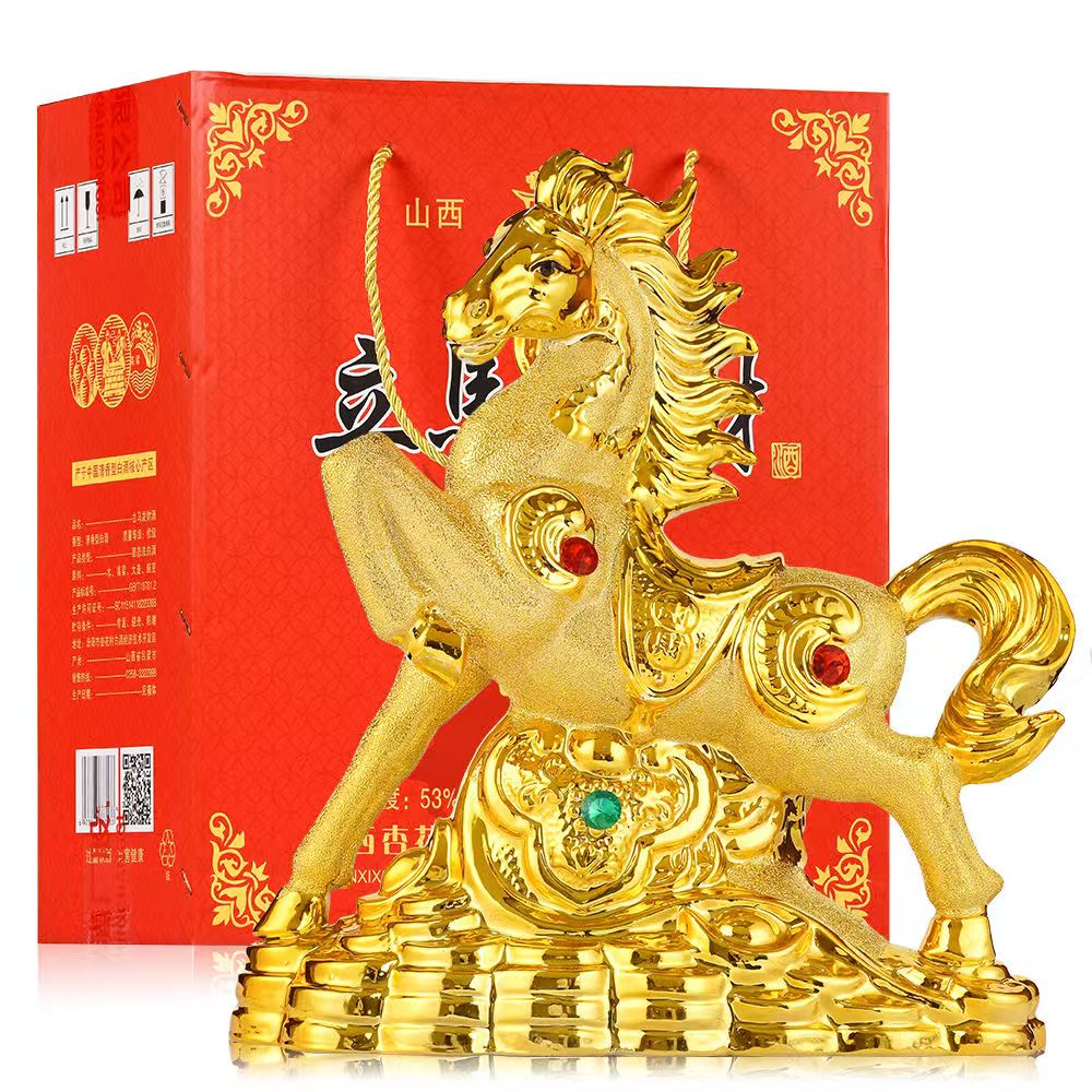 生肖马白酒53度清香型纯粮食酒原浆高粱酒1500ml约3斤礼盒装收藏