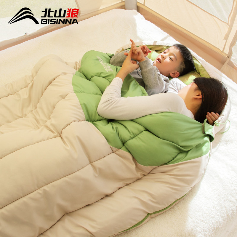 北山狼户外露营双人亲子加宽睡袋四季通用款保暖加厚成人被子两用