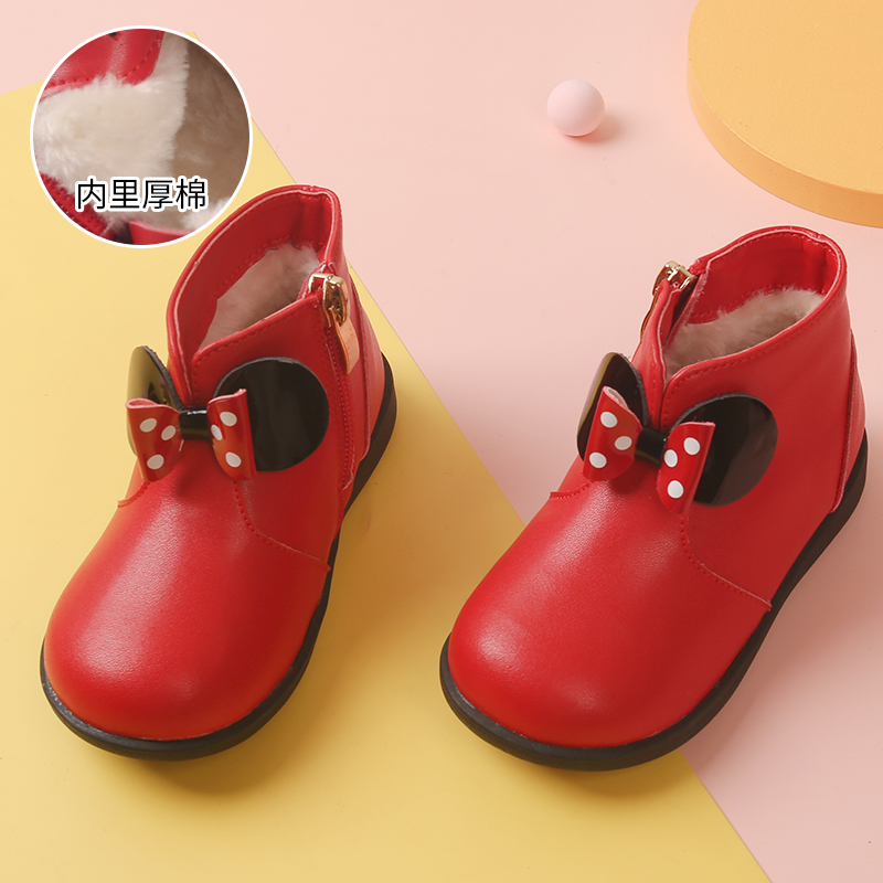 女童真皮短靴秋冬款新款公主靴子加绒鞋二棉鞋女宝宝小童皮鞋童鞋