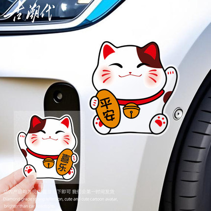 招财猫车贴纸划痕遮挡大面积个性创意装饰摩托电动车尾卡通可爱贴