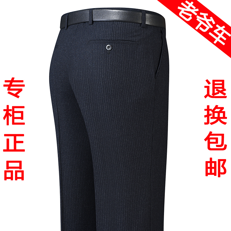 老爷车爸爸裤子垂感中年男士秋冬厚款商务休闲宽松西裤中老年男裤