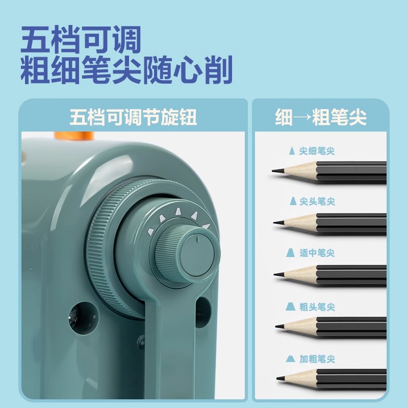 得力大口径卷笔刀手摇削笔器可调粗细小学生用粗铅笔大三角削笔机