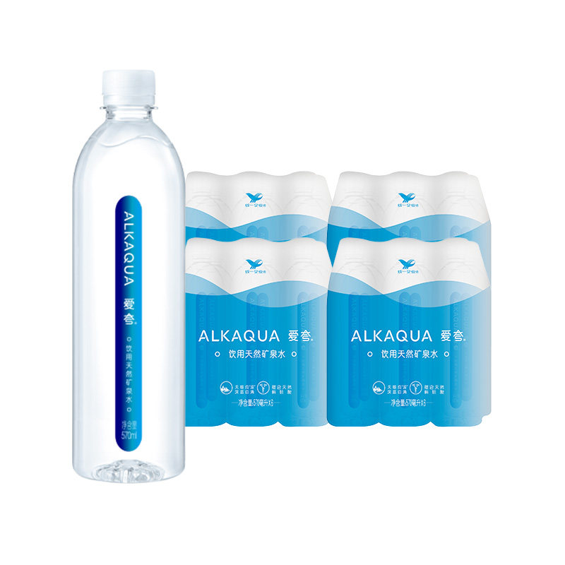 统一ALKAQUA爱夸不含溴酸盐饮用天然矿泉水570ml*24瓶整箱家庭装