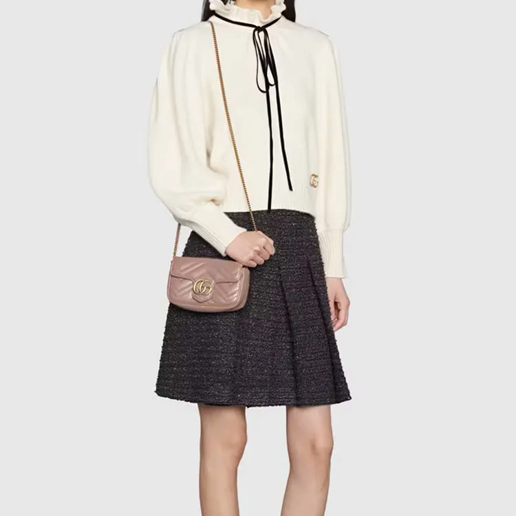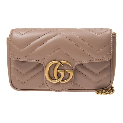 GUCCI古驰 GG Marmont系列 皮革 单肩斜挎包 超迷你 女款 奶茶色