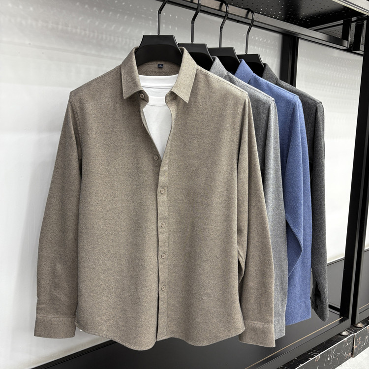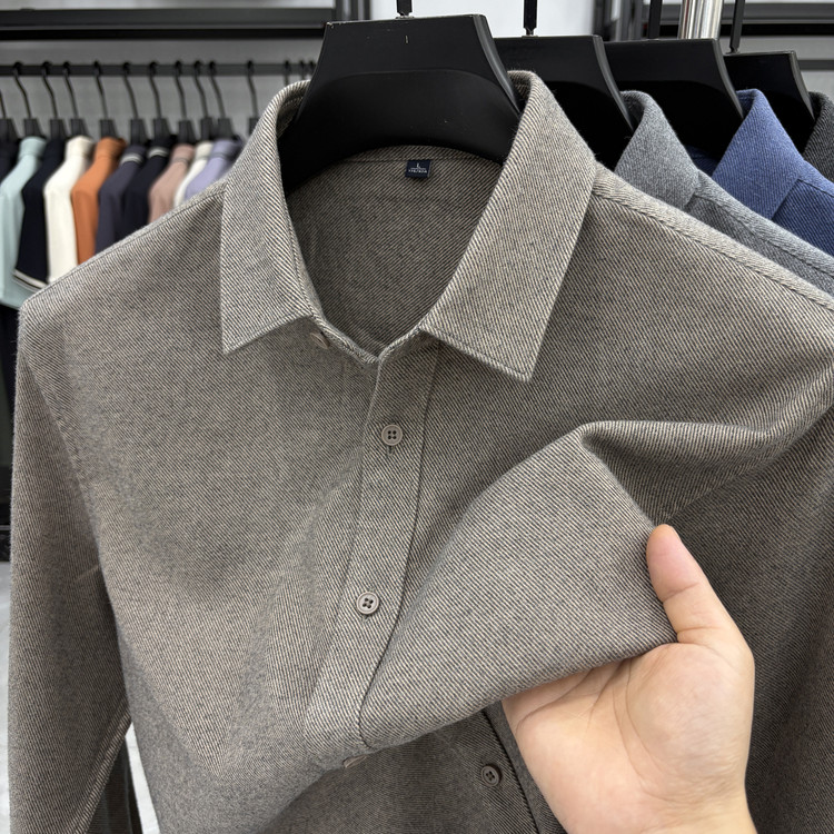 2025春秋季中年男士含羊毛商务休闲免烫衬衫加厚磨毛纯色通勤衬衣