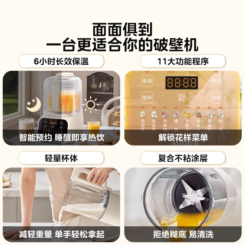 美的破壁机新款家用全自动智能多功能隔音罩豆浆榨汁机PB50T50