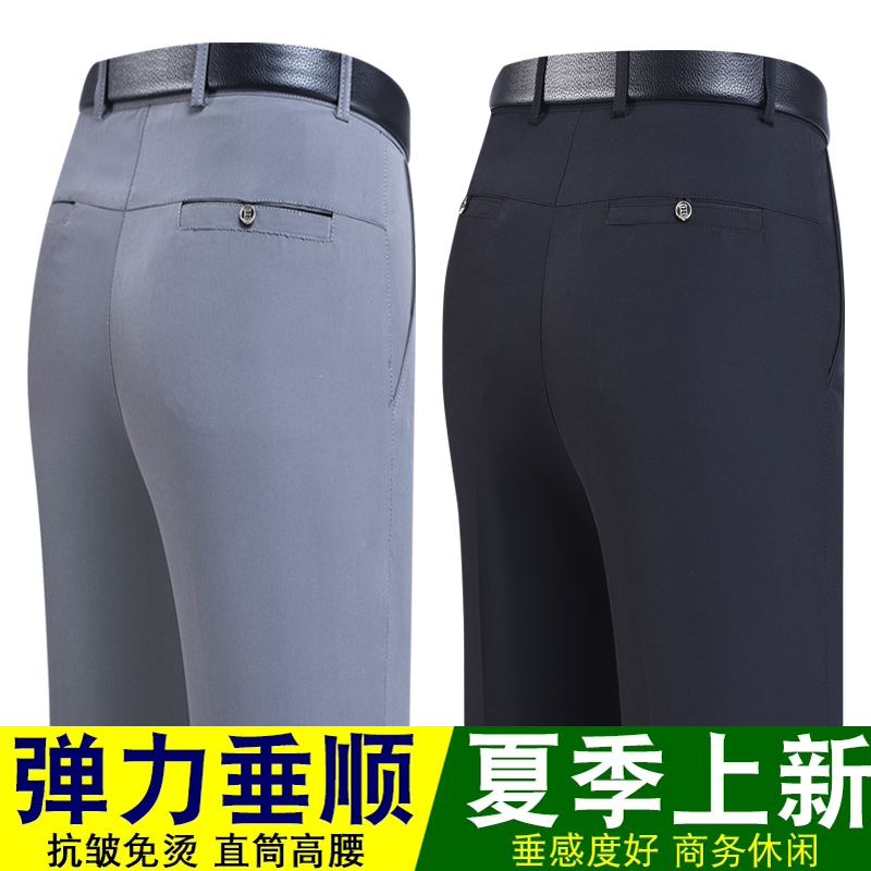 夏季薄款爸爸裤子冰丝西裤男中A年男士休闲裤宽松中老年人直筒男