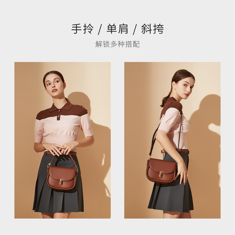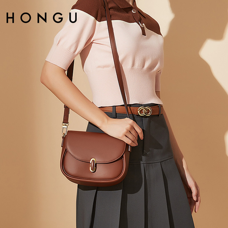 红谷女包高级感牛皮单肩斜挎包时尚复古马鞍包休闲百搭手提包小包