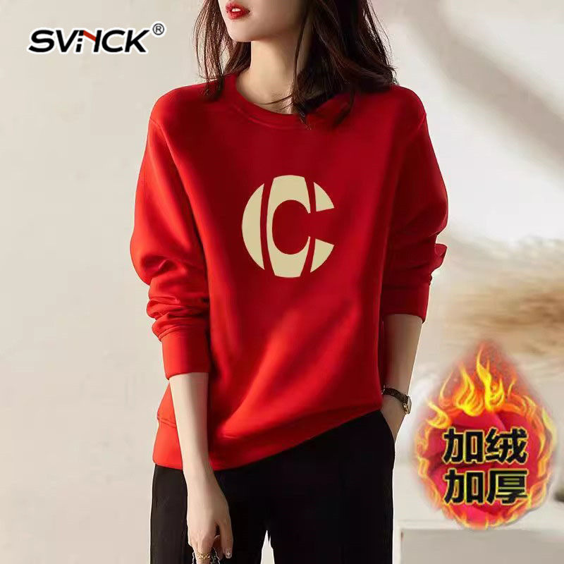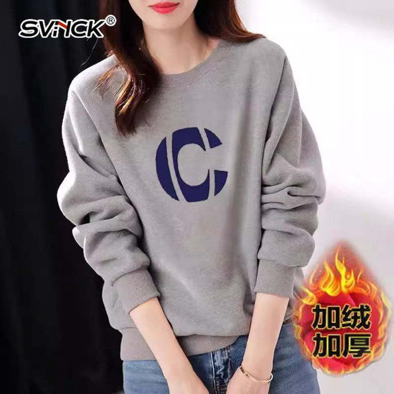 纯棉卫衣女圆领2025新款T恤宽松休闲打底衫韩版长袖秋冬加绒上衣