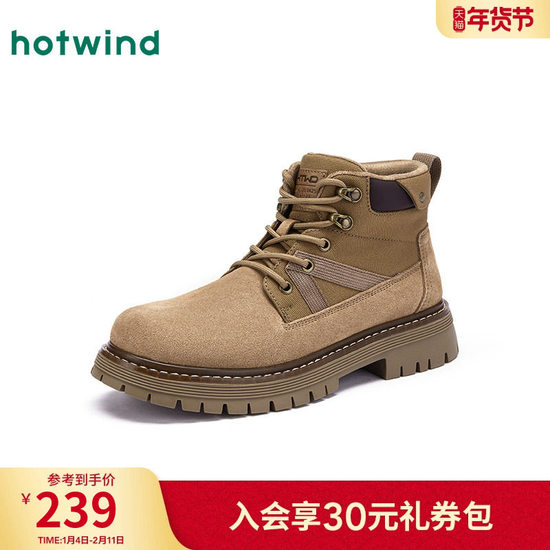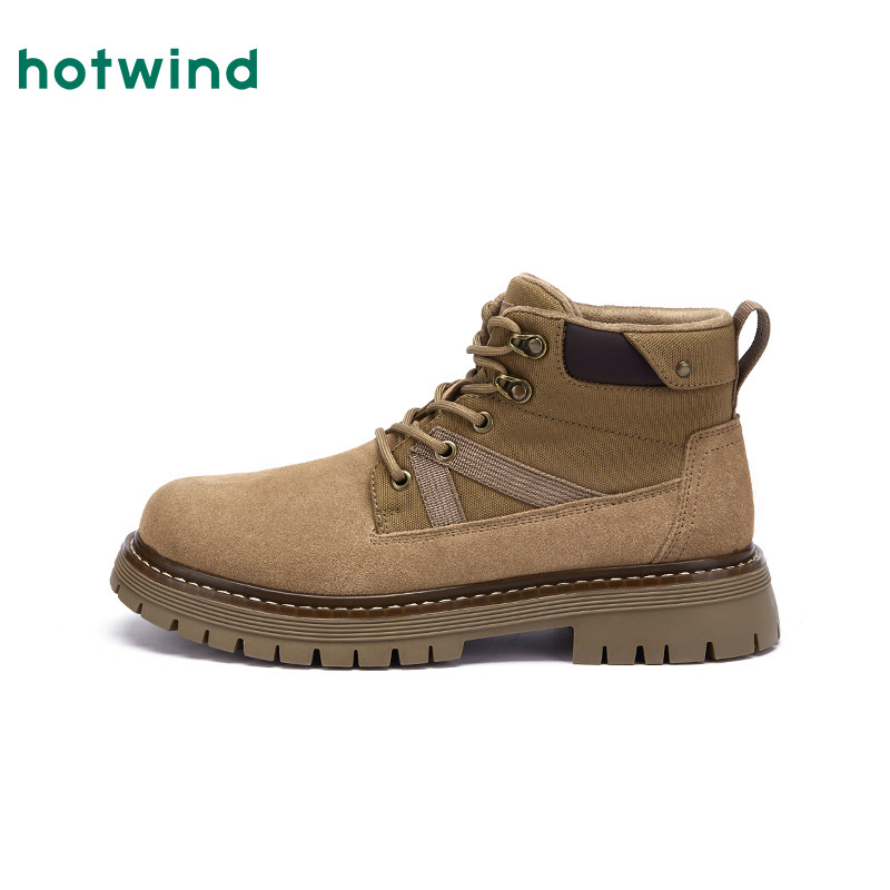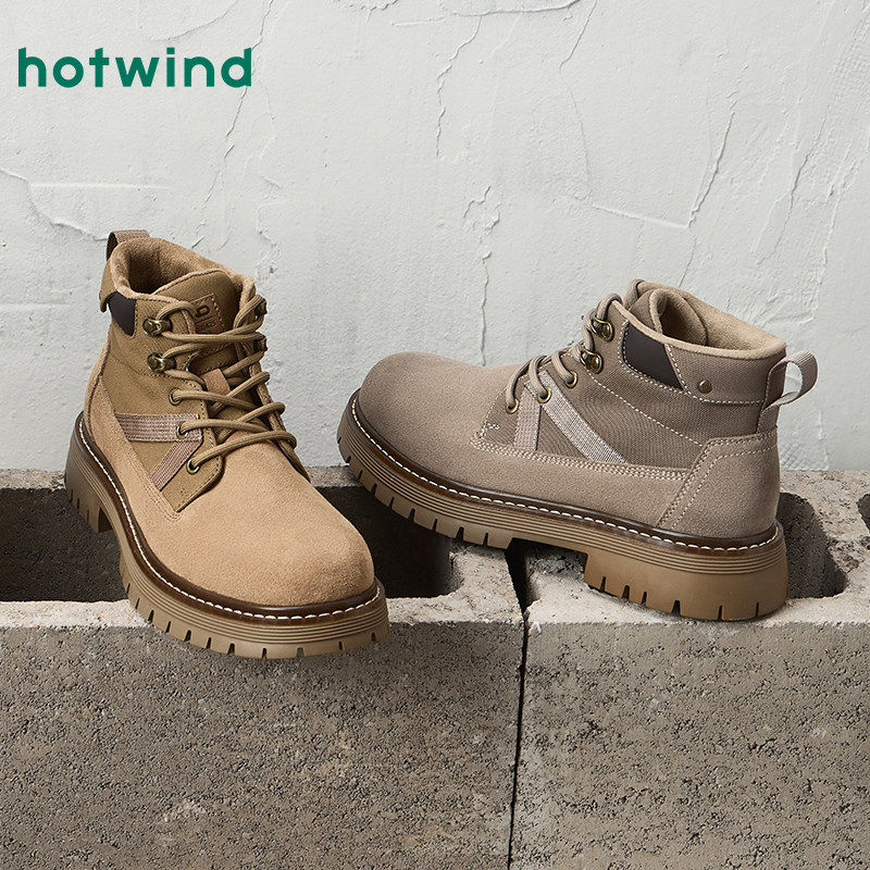 热风男鞋2025年冬季新款男士时尚休闲靴复古舒适百搭马丁靴子