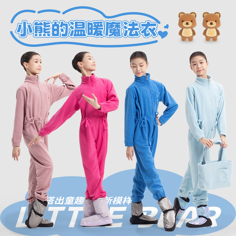 众爱舞苑儿童舞蹈服保暖加厚绒秋冬热身芭蕾舞练功训练服连体套装