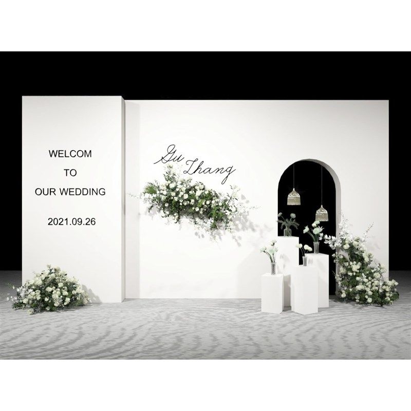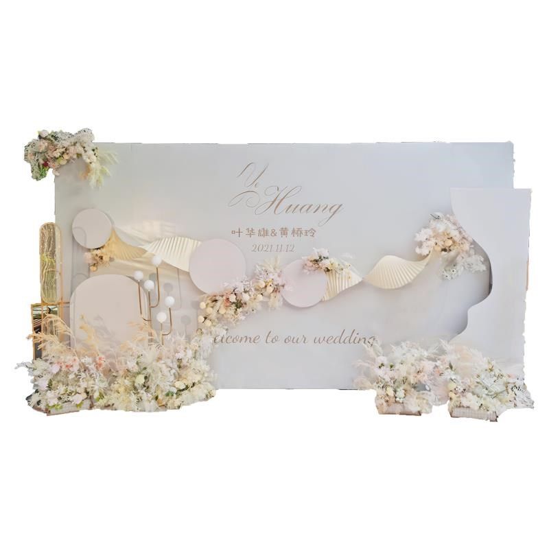 白色结婚舞台迎宾背景墙装饰户外婚礼酒店农村现场布置kt板定制