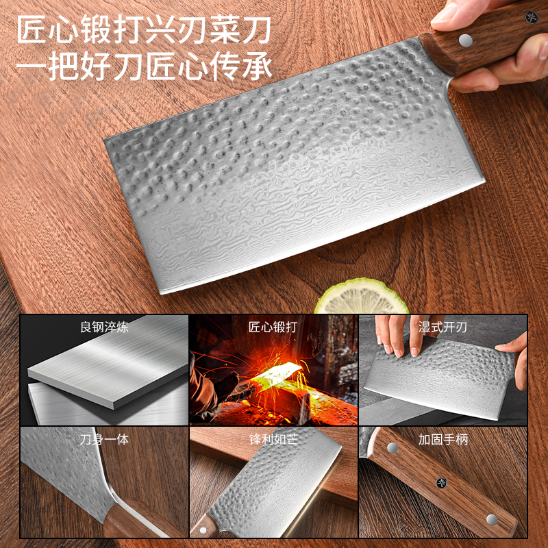兴刃大马士革菜刀家用厨具厨房专用锋利切片菜肉骨头两用旗舰店
