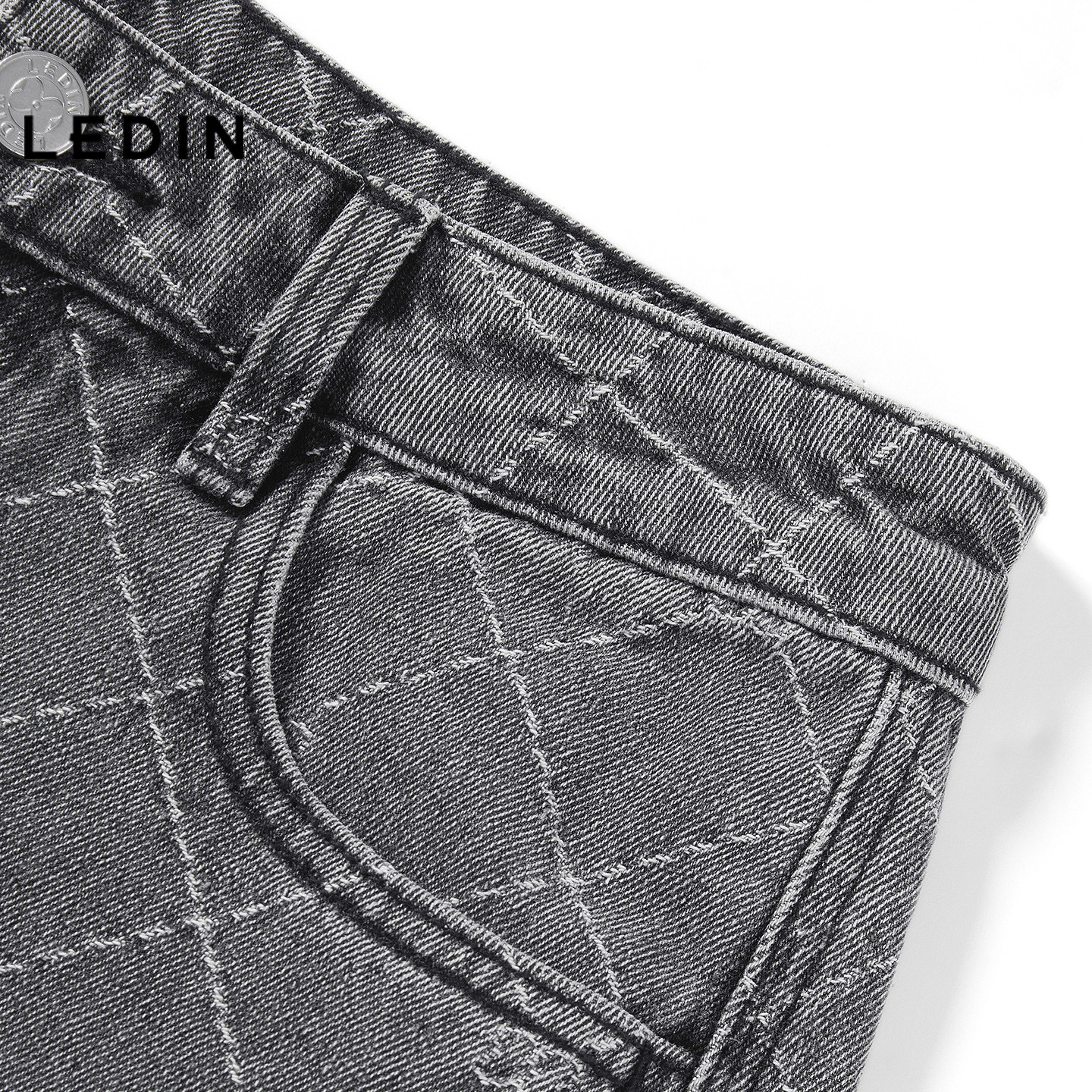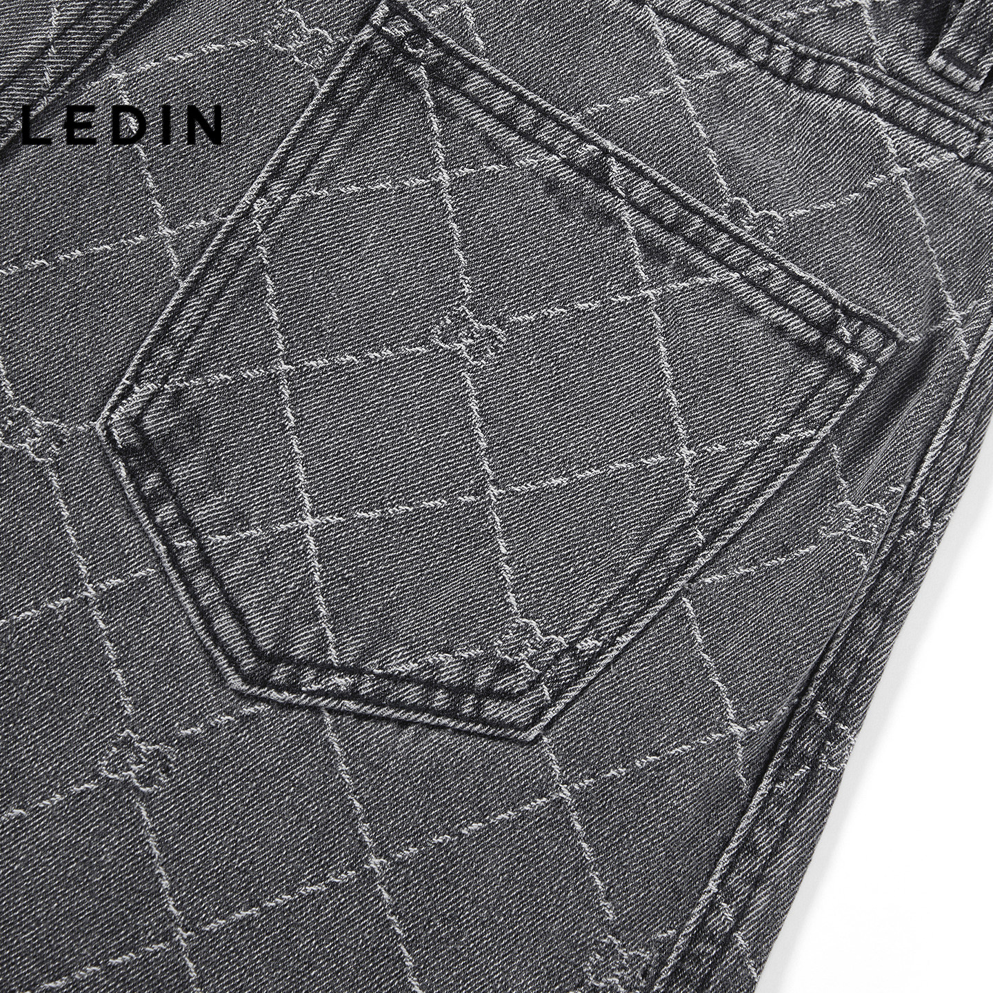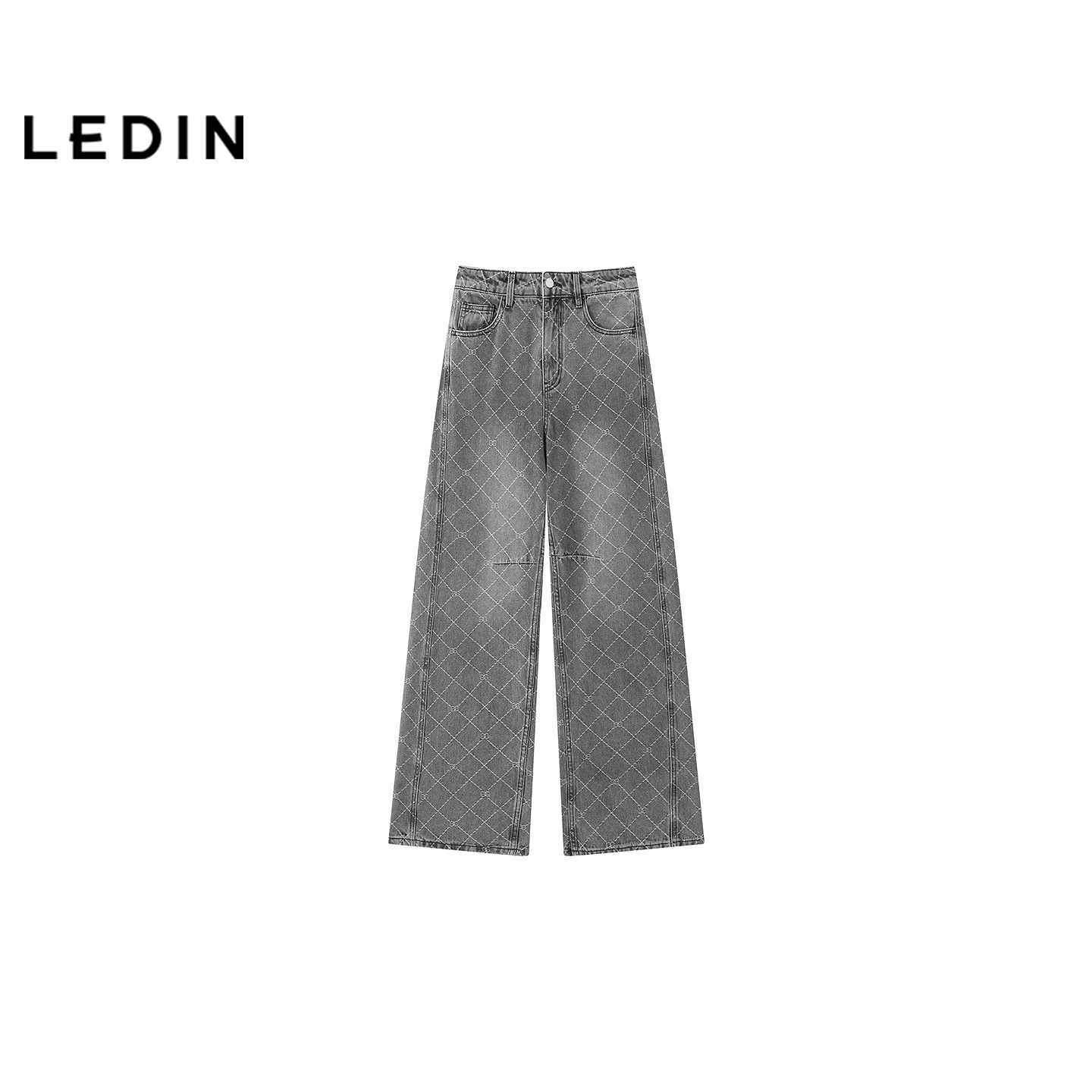 【商场同款】乐町蝴蝶花菱形格牛仔裤夏新款直筒阔腿裤C1HAG2186