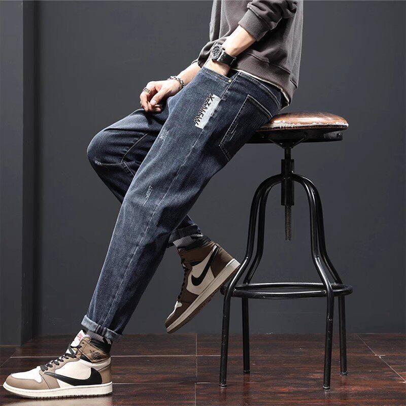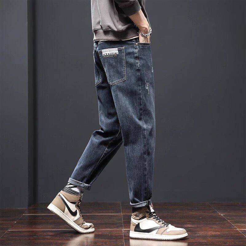 Yishion以纯官方时尚正品男生牛仔裤秋冬季加绒加厚直筒长裤宽松