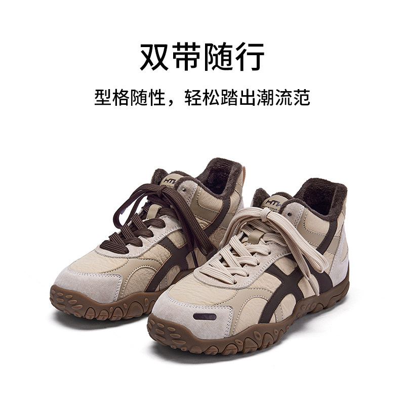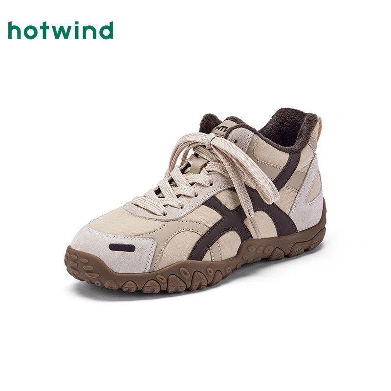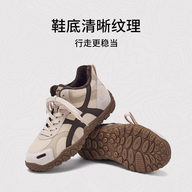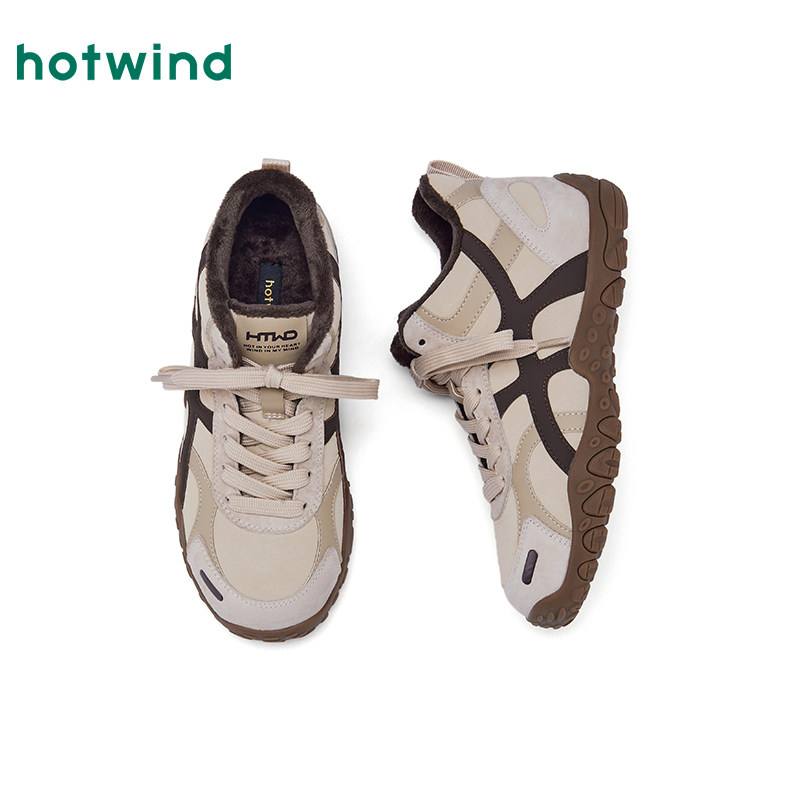 热风户外运动休闲鞋女款2025年冬季新款薄底加绒慢跑鞋棉鞋女鞋