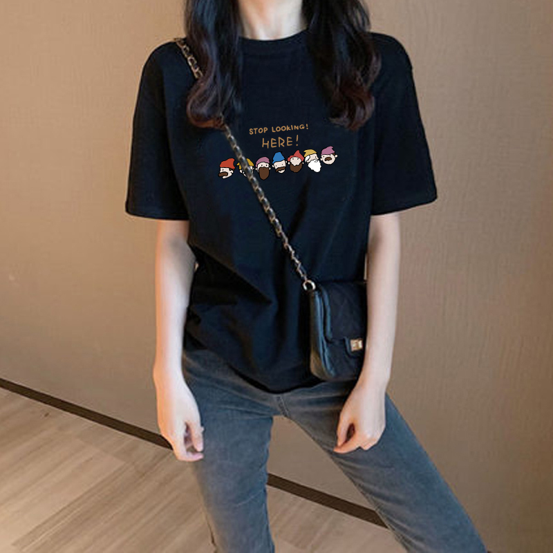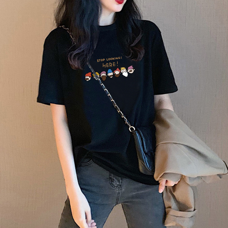 卡通减龄黑色短袖t恤女印花宽松上衣2025夏季新款韩版纯棉体恤潮
