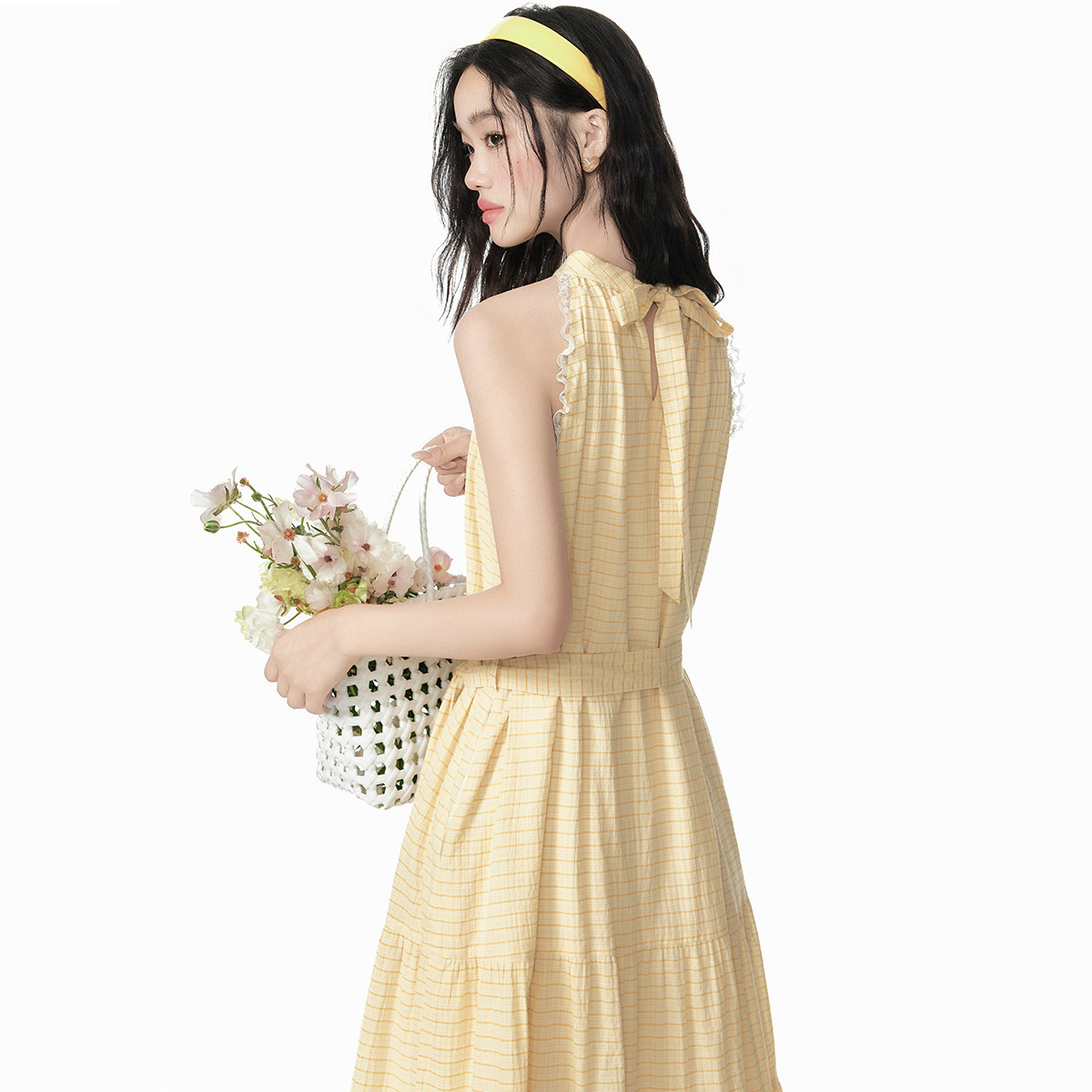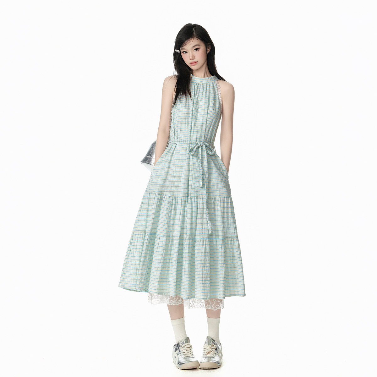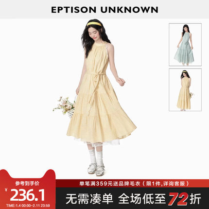 EPTISON挂脖连衣裙女2025夏季新款甜美度假风出游穿搭漂亮格子裙