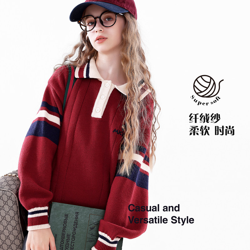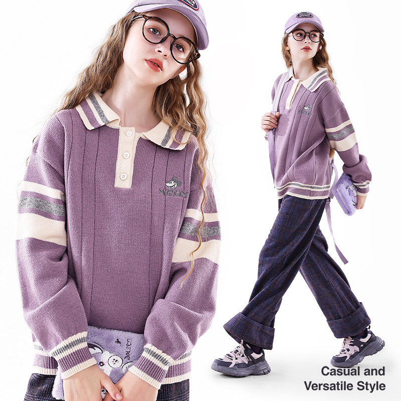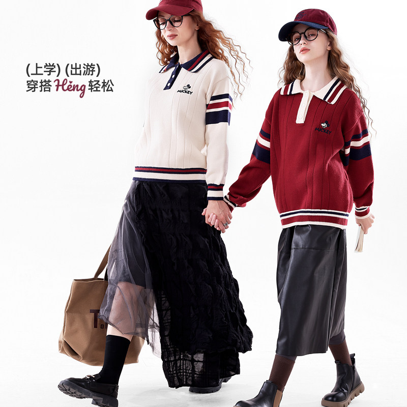 迪士尼女童毛衣春秋新款女孩加厚针织衫童装上衣亲子装打底衫衣服
