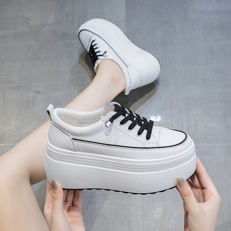 真皮厚底松糕鞋女增高显瘦秋季新款2025透气休闲小白鞋网红运动鞋