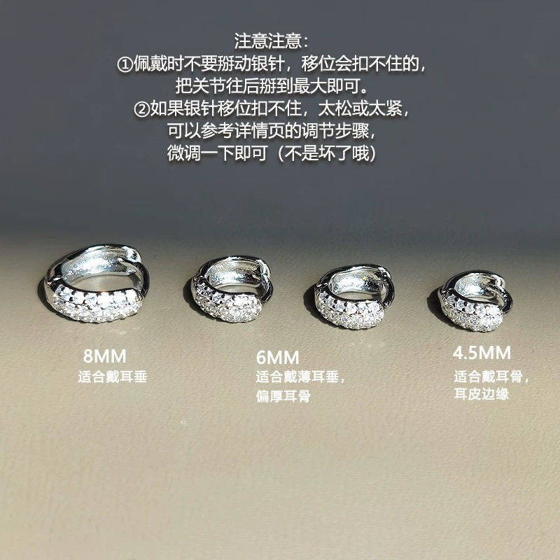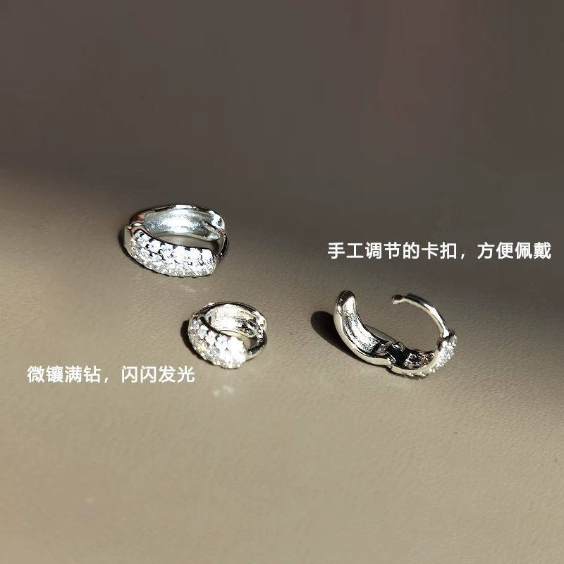 铜合金耳饰 边缘耳骨钉女小耳圈极小超闪满钻耳骨环独特耳扣精致