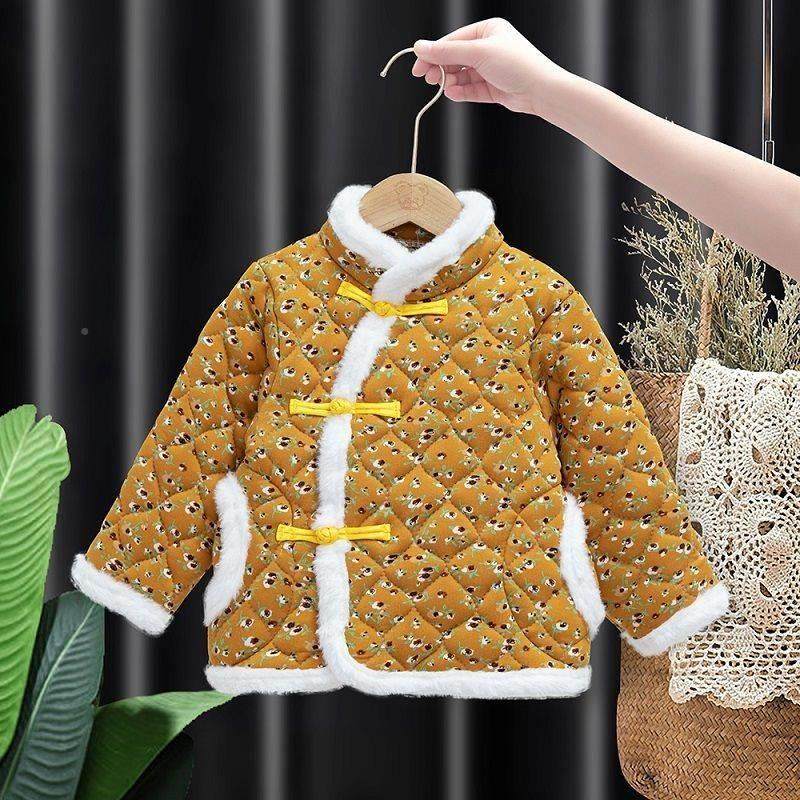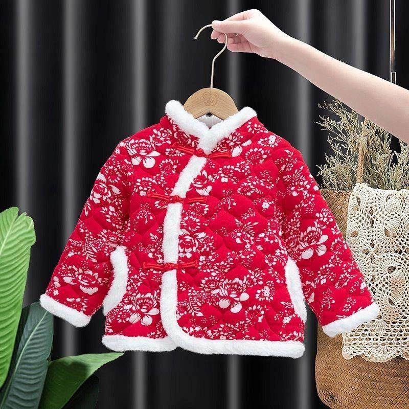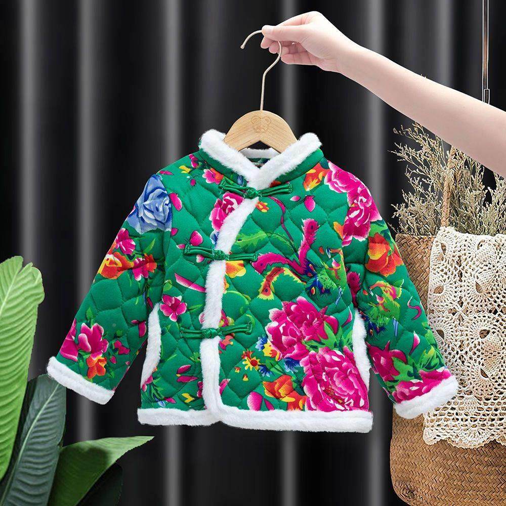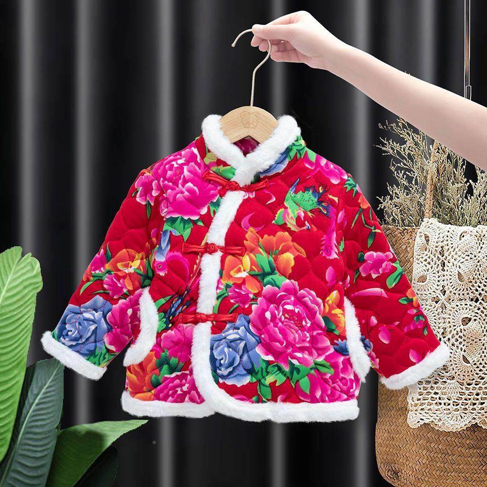 东北大花儿童棉袄女款马甲棉花网红手工小花袄拜年服宝宝棉服加厚