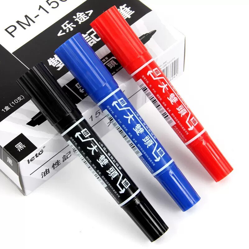 乐途大头笔双头马克笔学生美术专用彩色记号笔黑色防水油性不掉色