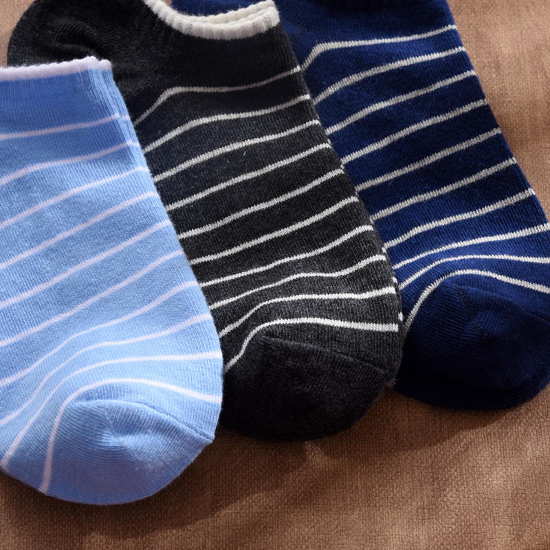 条纹短袜男个性低腰运动透气防臭船袜学生低帮短筒袜男士四季棉袜