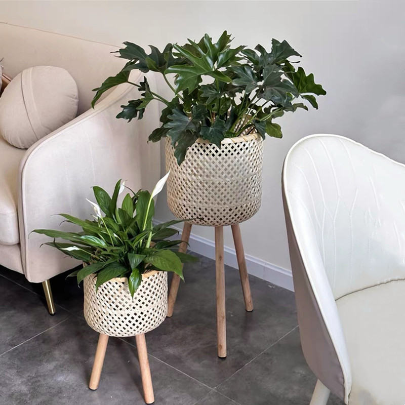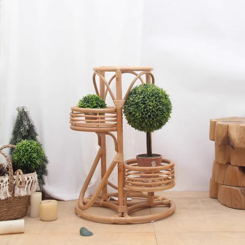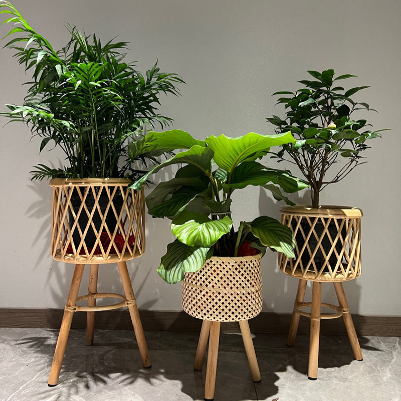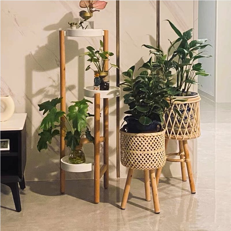 北欧实木印尼藤编花架客厅沙发边几落地竹编置物架墙角阳台花盆架