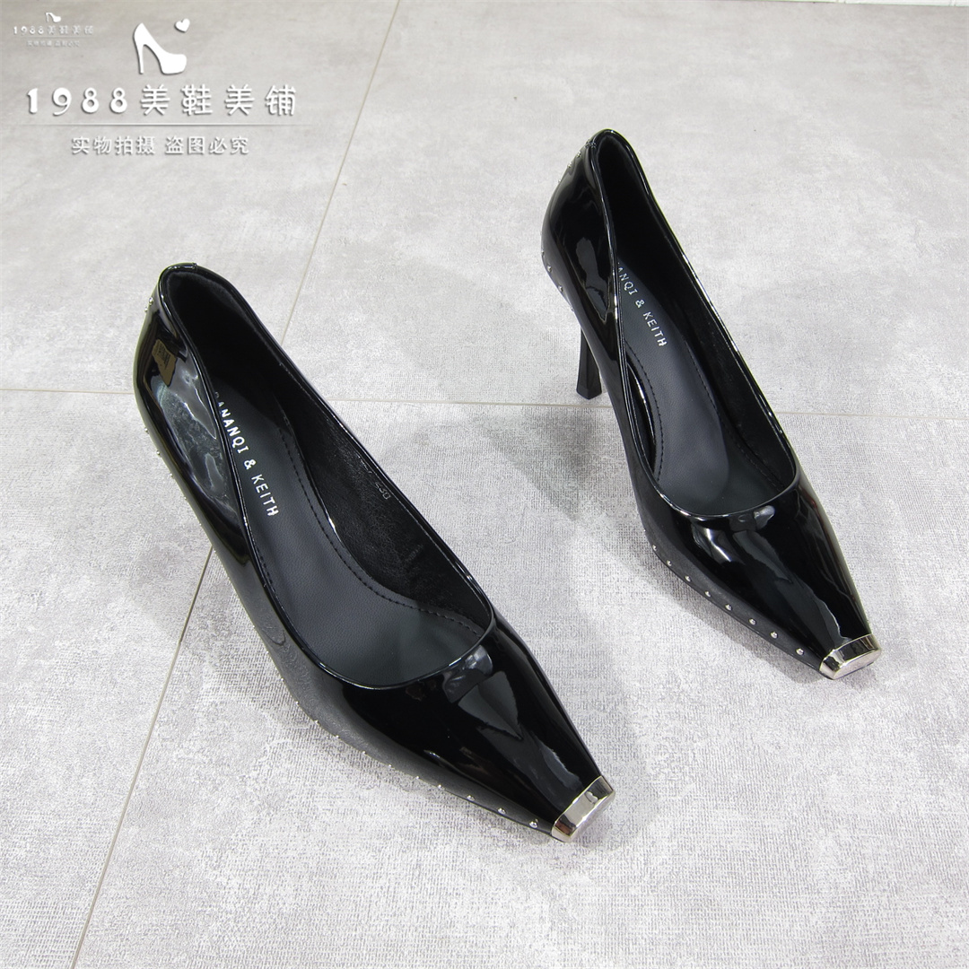 性感浅口细跟金属头气质软皮单鞋