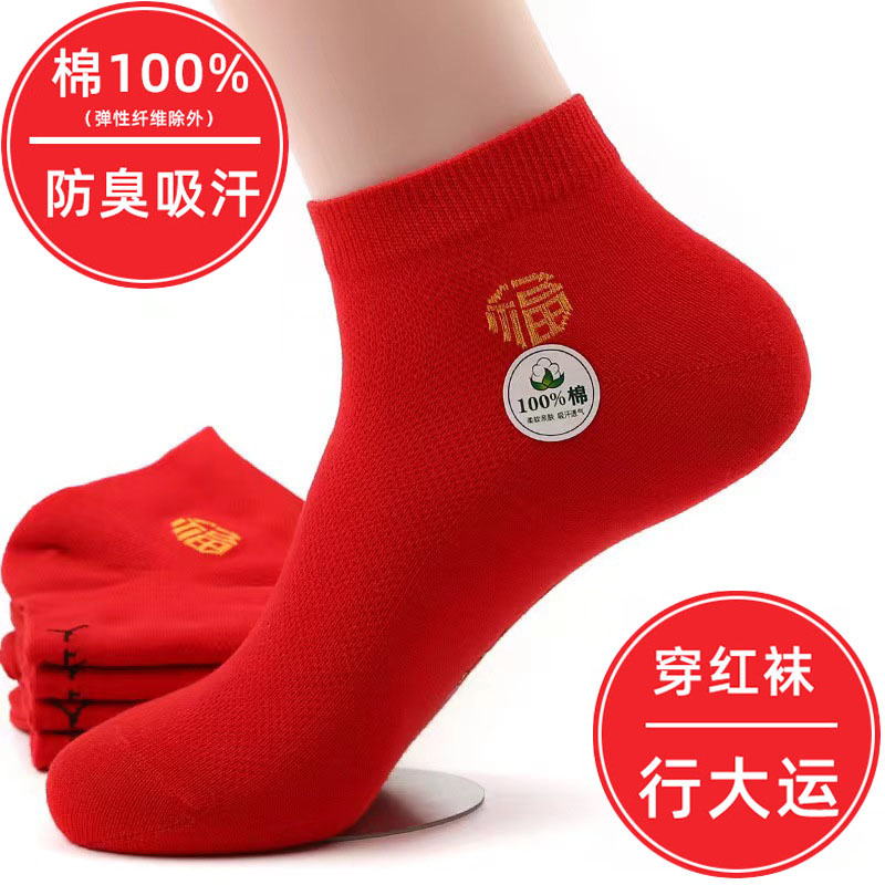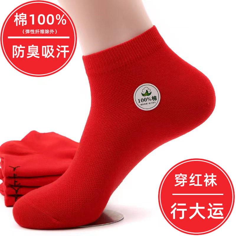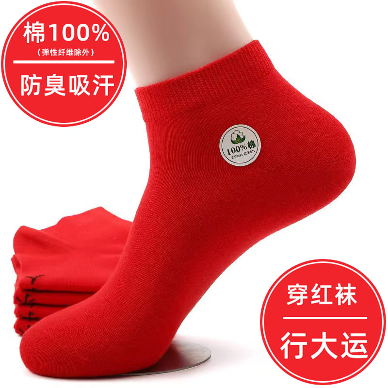 纯棉本命年大红色袜子男女同款短袜全棉四季结婚夏季薄款短款棉袜