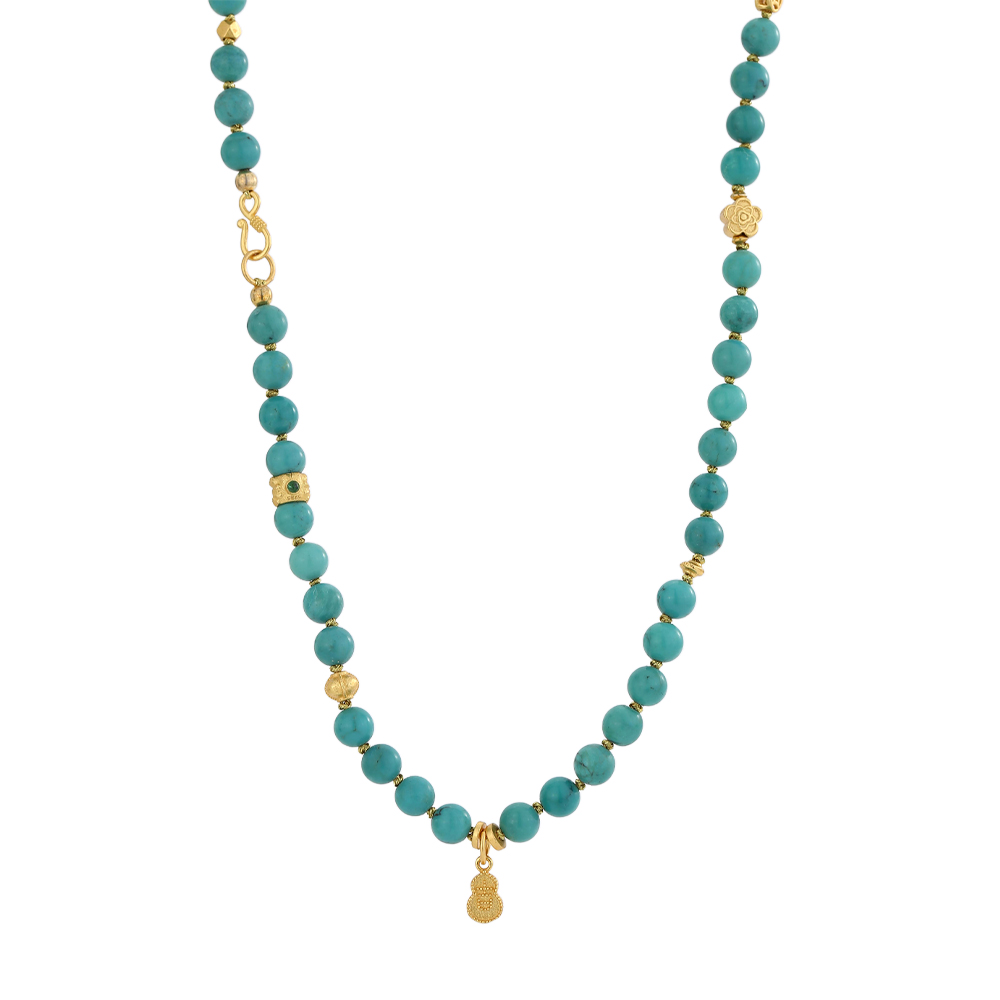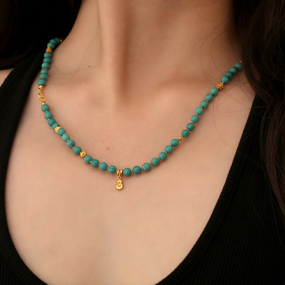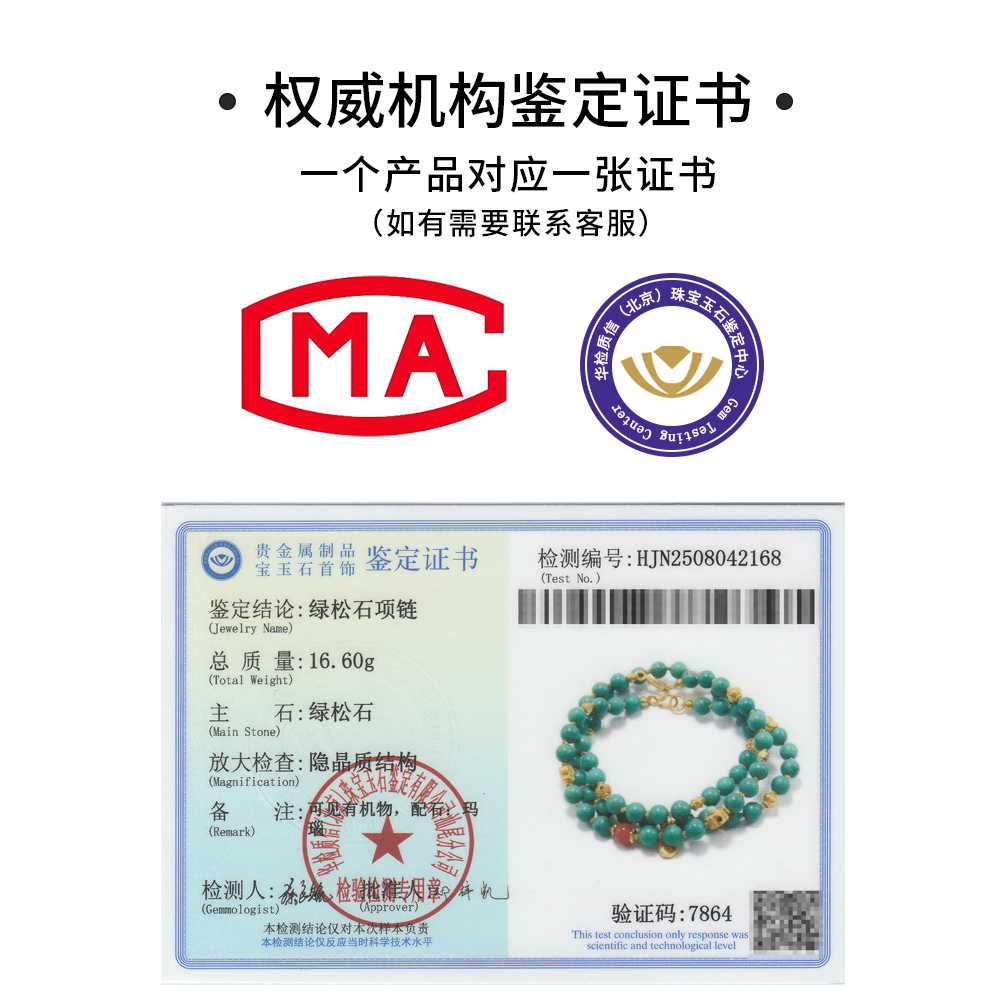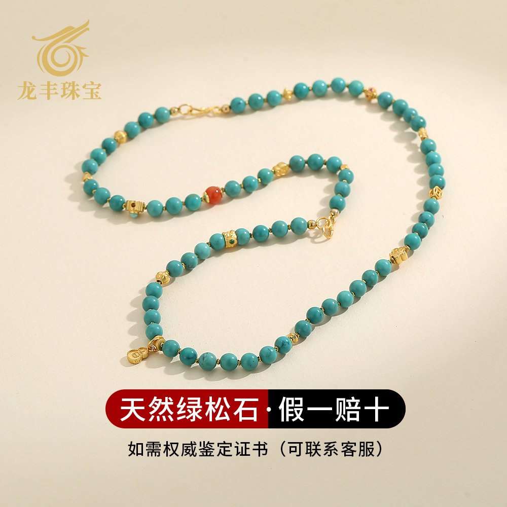 龙丰绿松轩正品天然绿松石S925银镀18K金圆珠南红diy项链女款