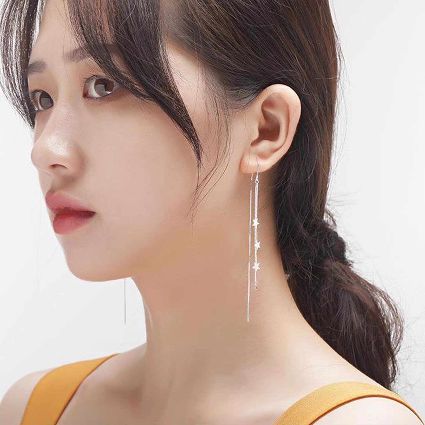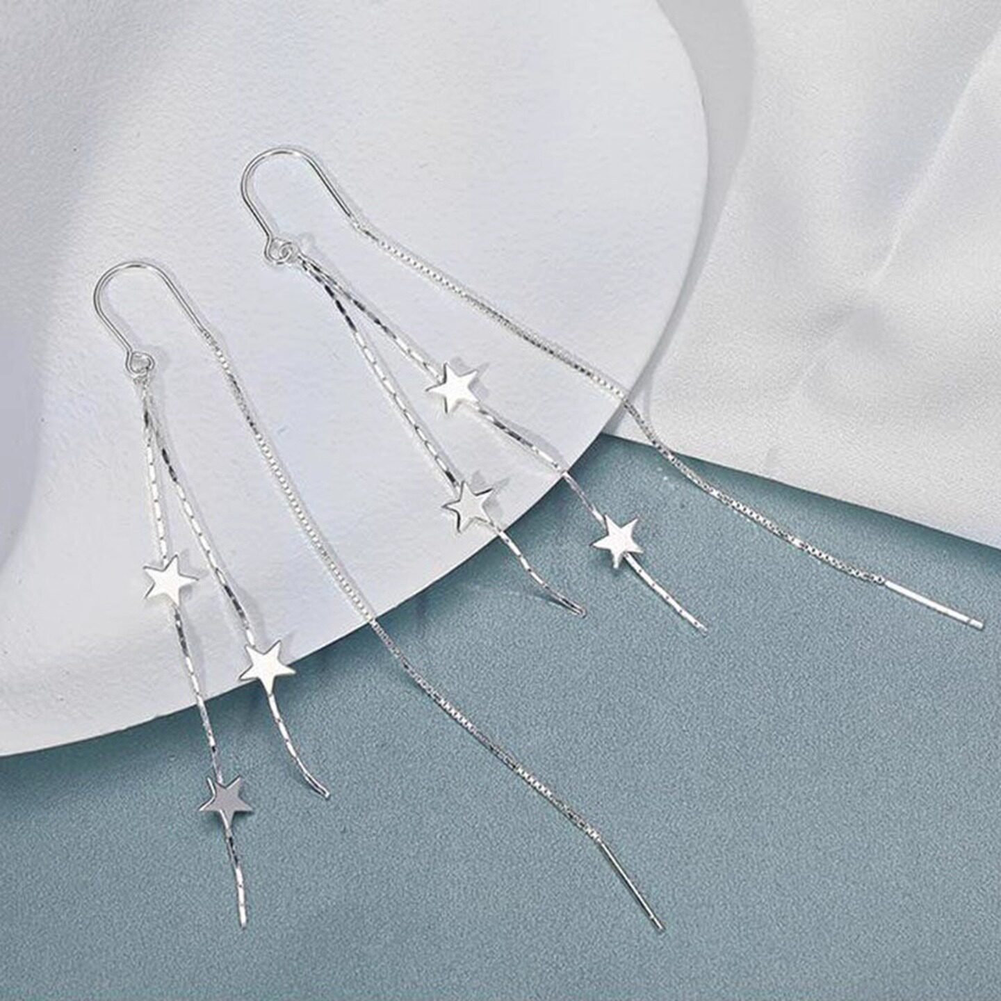 s925银针星星耳线长款流苏耳环女新款潮优雅时尚甜美气质耳链百搭