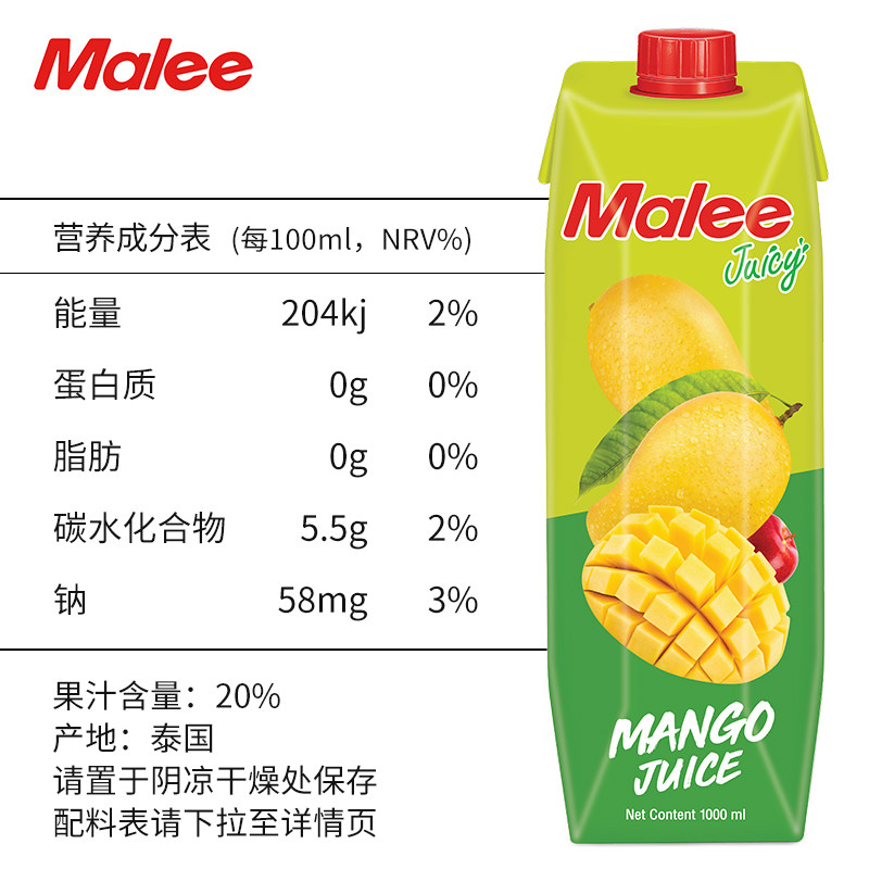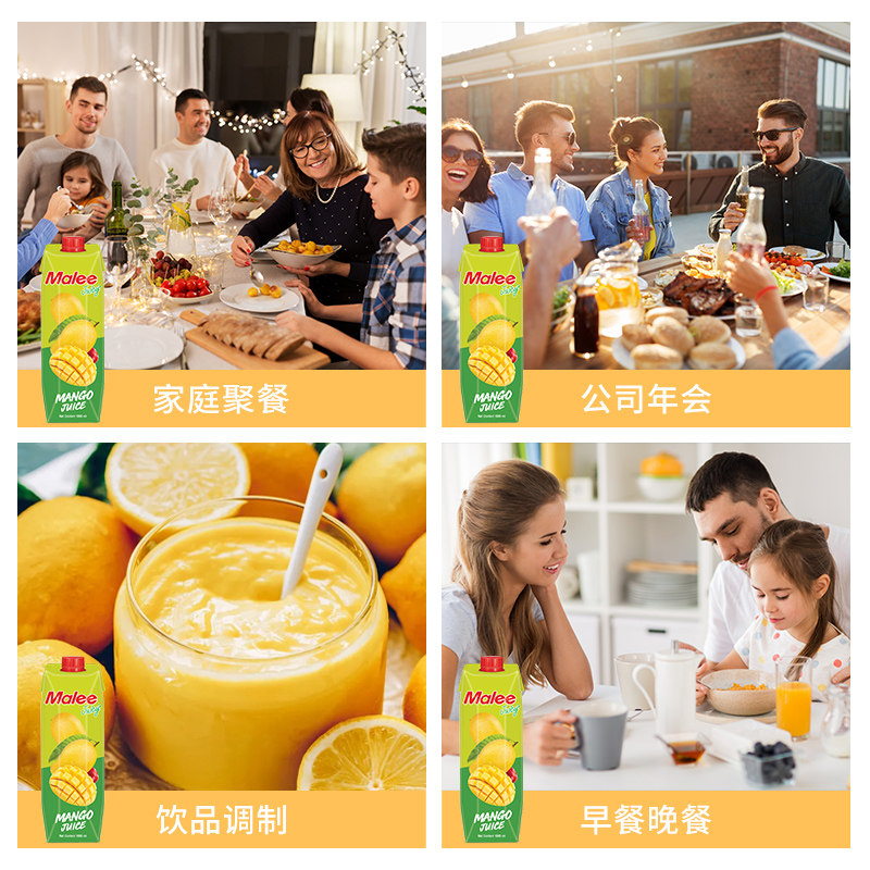 泰国Malee苹果芒果复合果汁1000ml浓缩饮料大瓶整箱进口酒席商超
