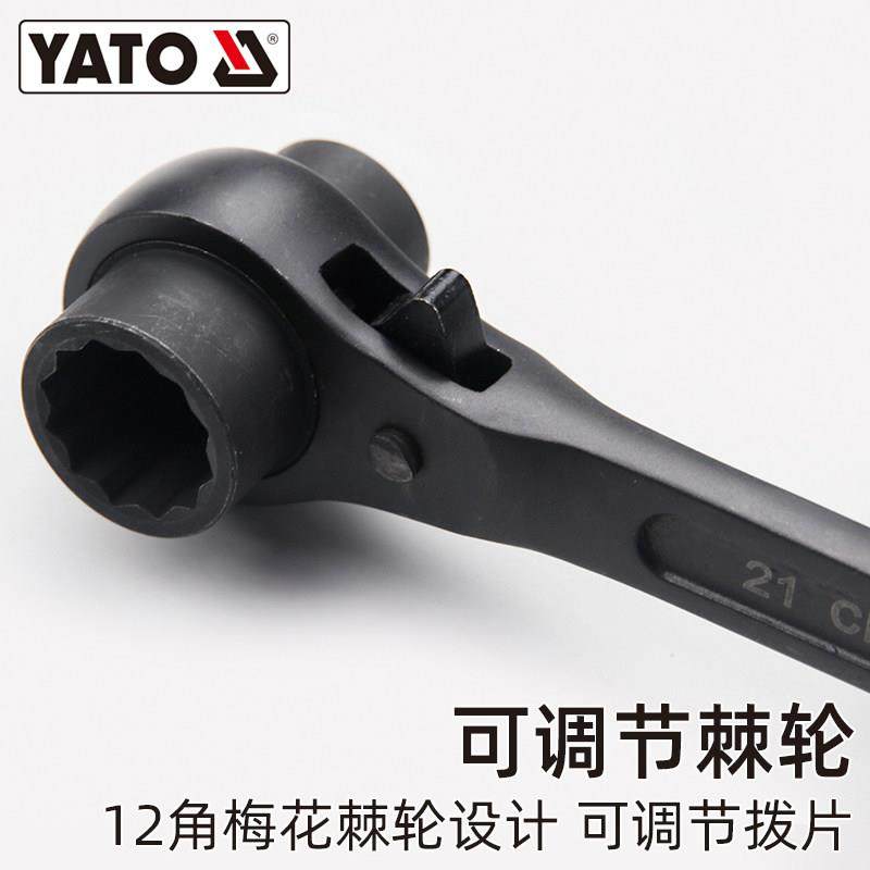 YATO尖尾棘轮扳手双向快速省力梅花齿刺轮荆轮脚手架子工套筒板手