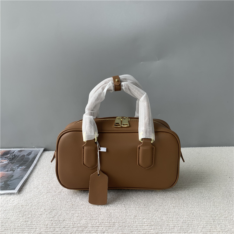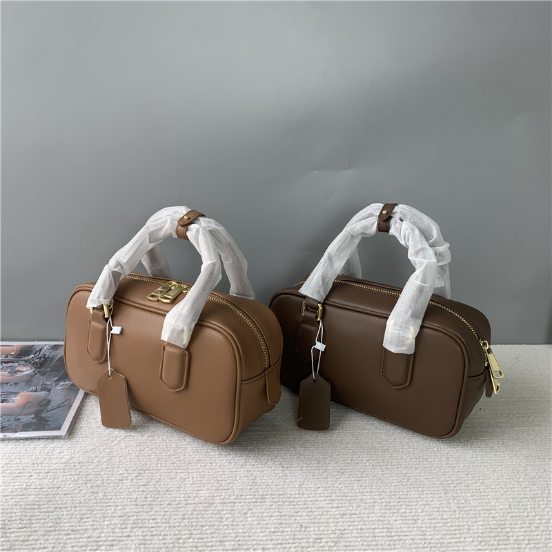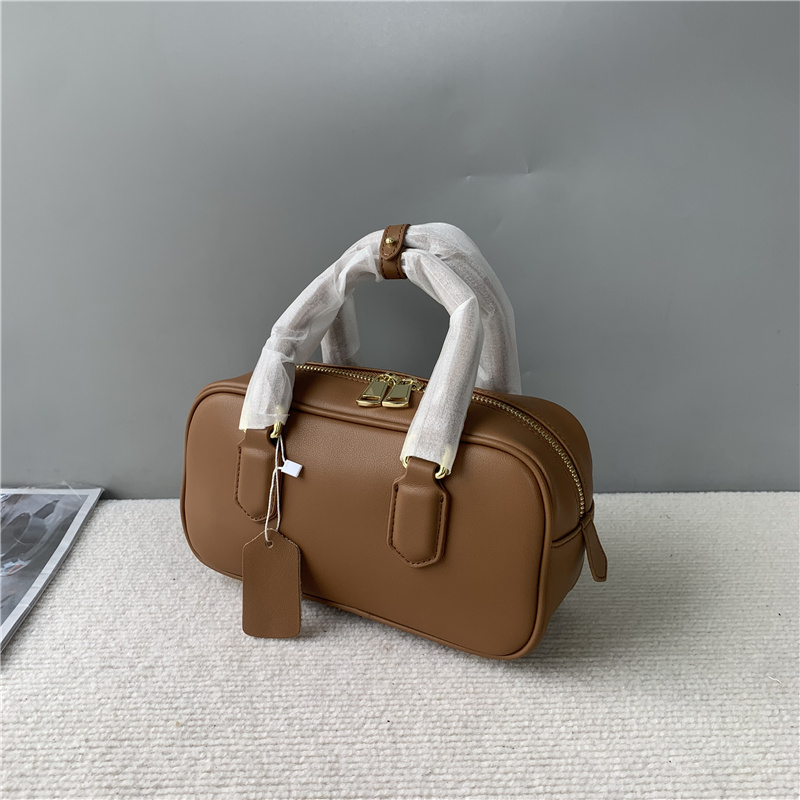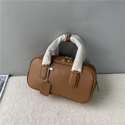 手提新款保龄球女包美拉德复古单肩斜挎包包时尚百搭真皮小方包