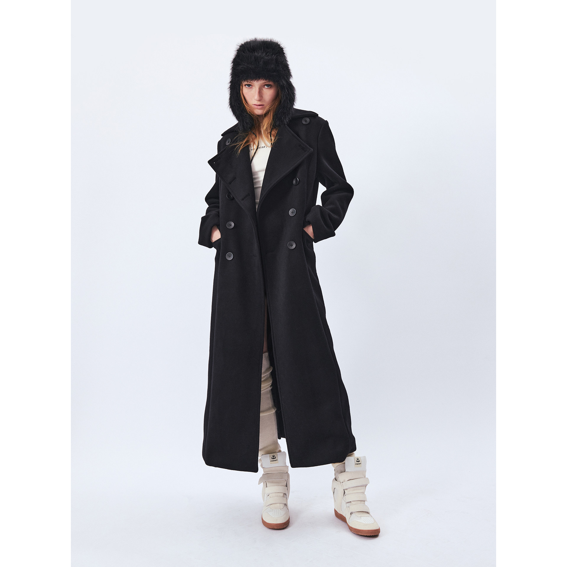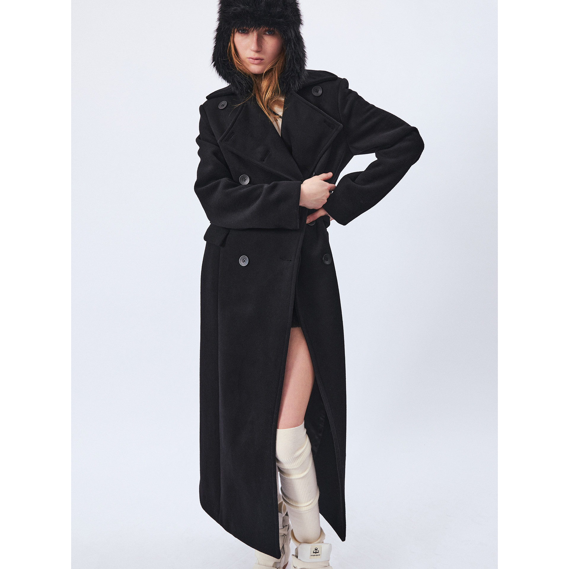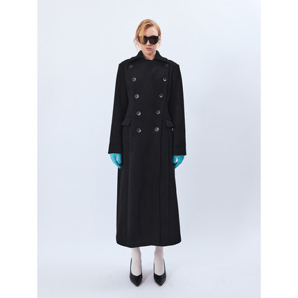1C00M4修身长款羊毛大衣双排扣收腰显瘦长款外套毛呢大衣女士冬季