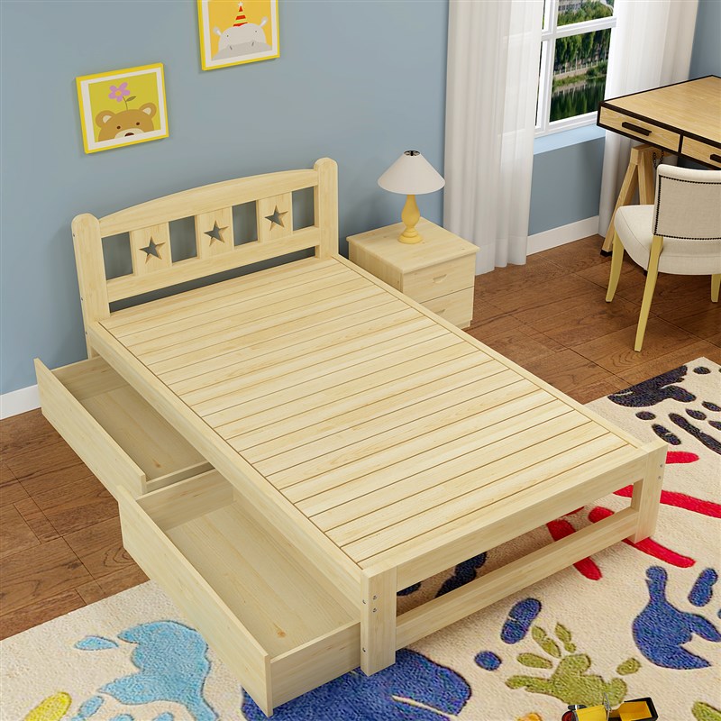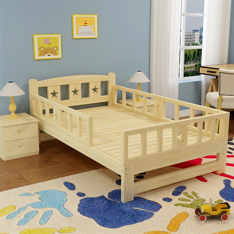 儿童公主床实木单人床1米带护栏床男孩女孩松木小床拼床1.2定制
