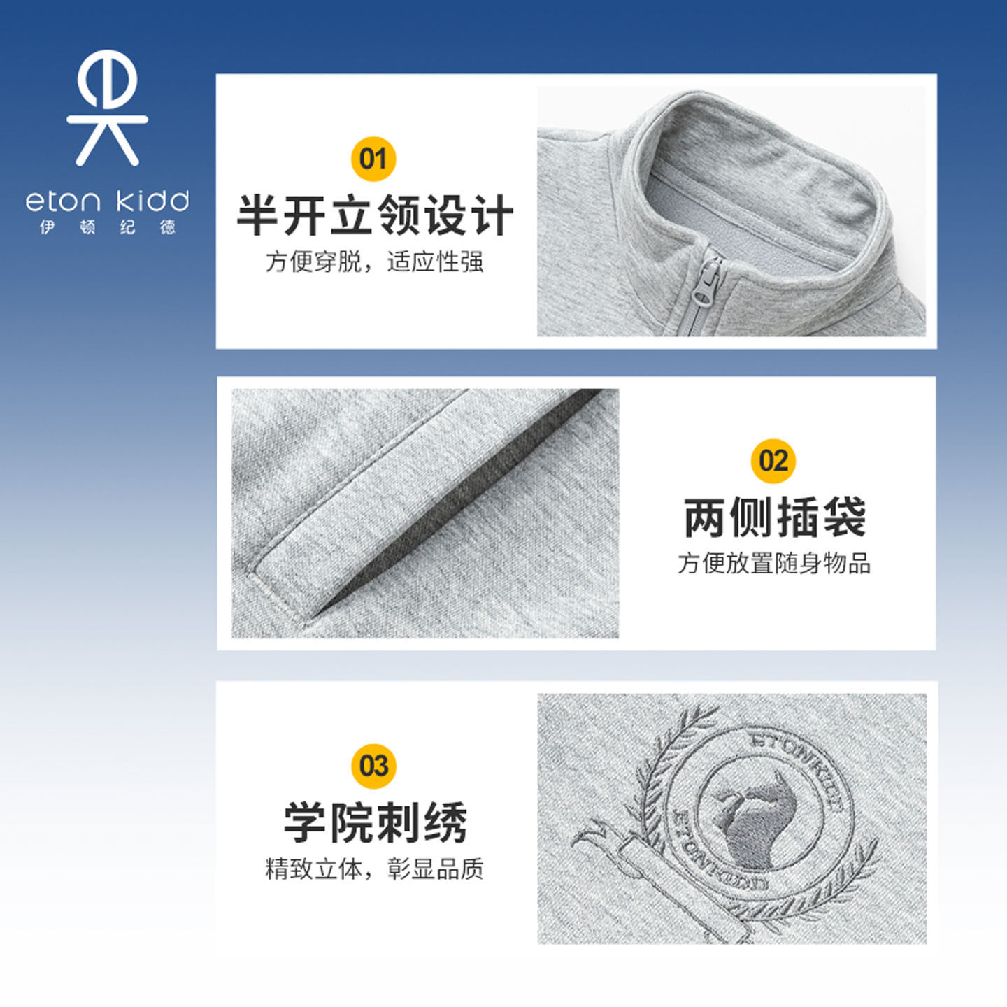 伊顿纪德儿童加绒卫衣圆领运动服