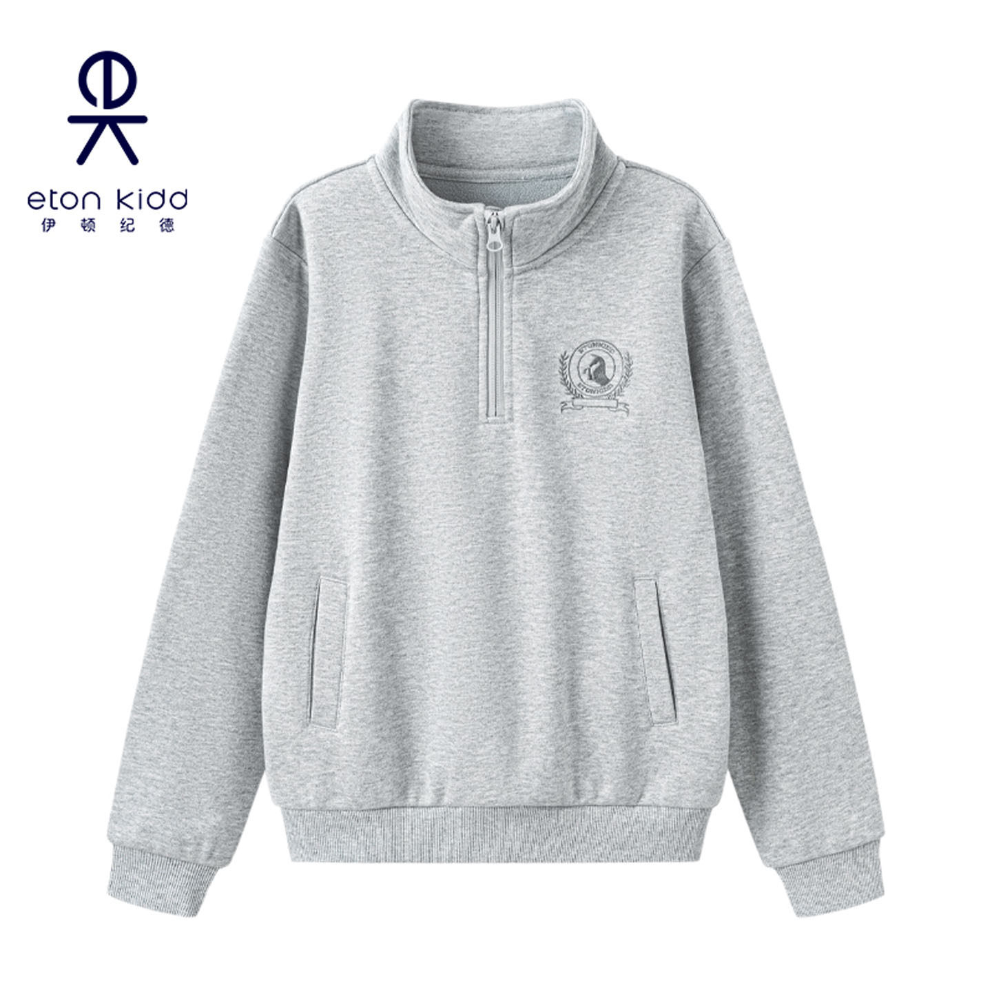 伊顿纪德儿童加绒卫衣秋学院男女童摇粒绒绣花圆领运动服25Y914S