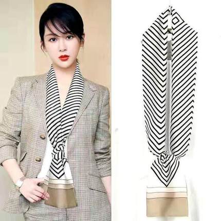 小丝巾女春秋款洋气时尚韩国百搭装饰领巾薄款围巾长方巾