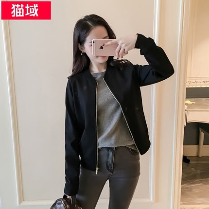 夹克外套女宽松短款春秋纯色薄款棒球服韩版休闲开衫拉链中性欧货
