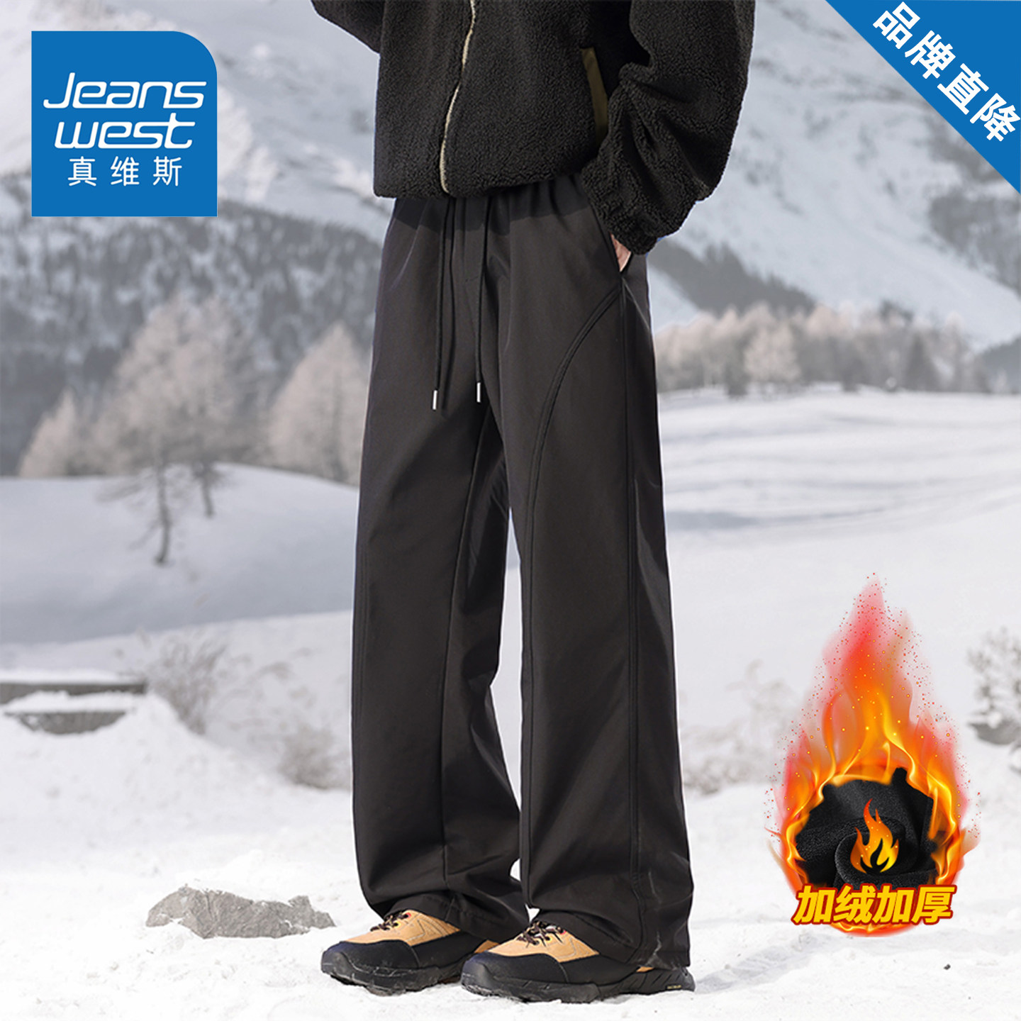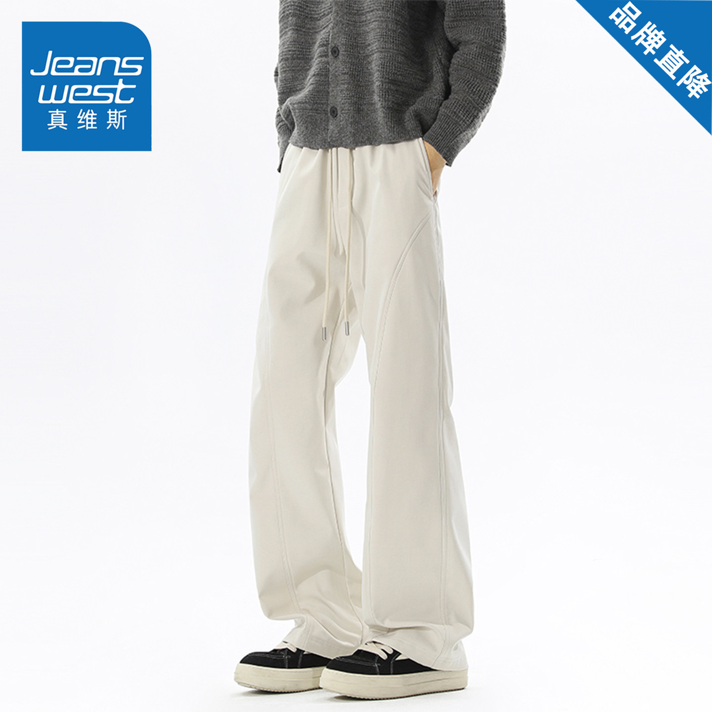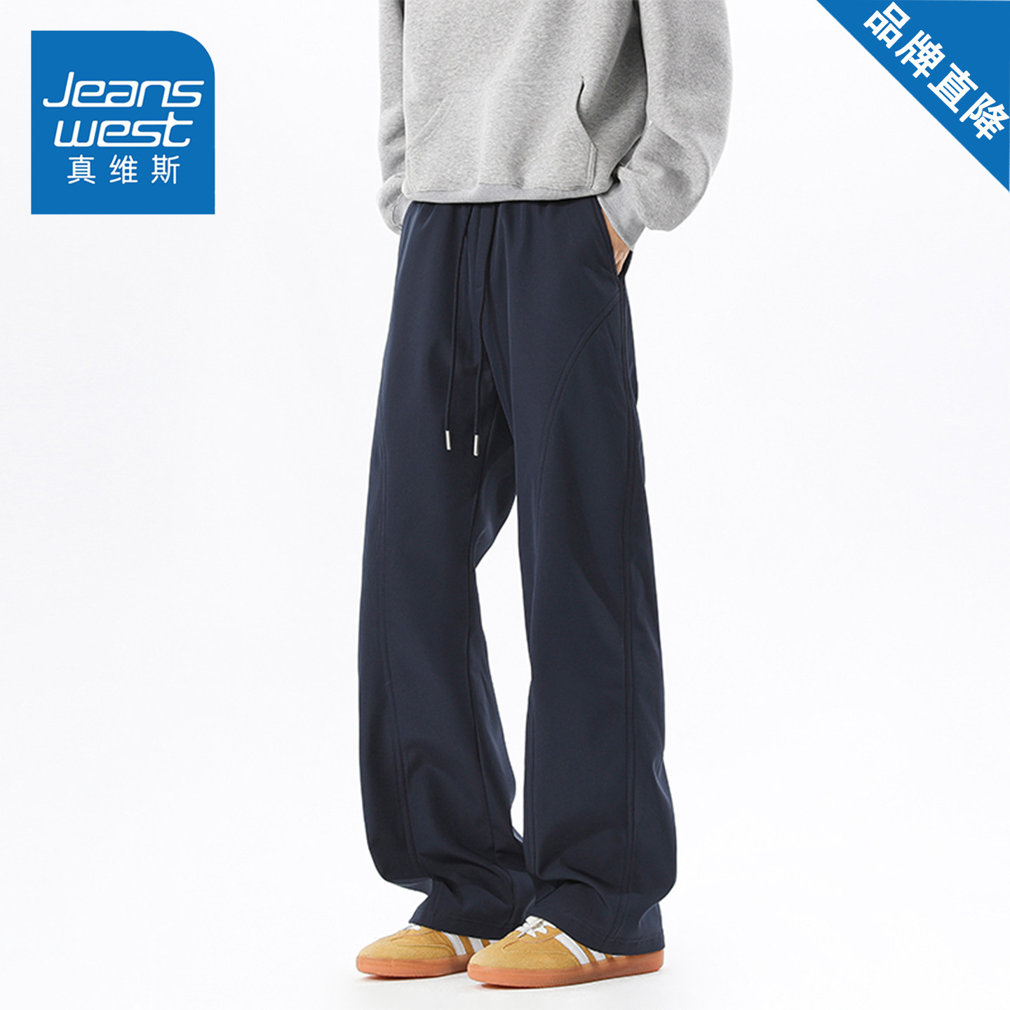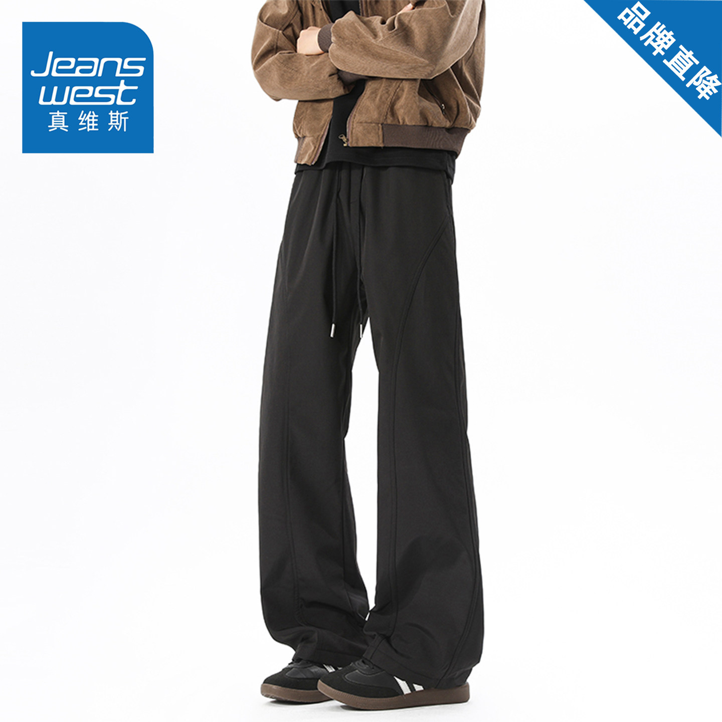 真维斯美式休闲裤男女款秋冬季宽松百搭弯刀裤直筒复古显瘦长裤子