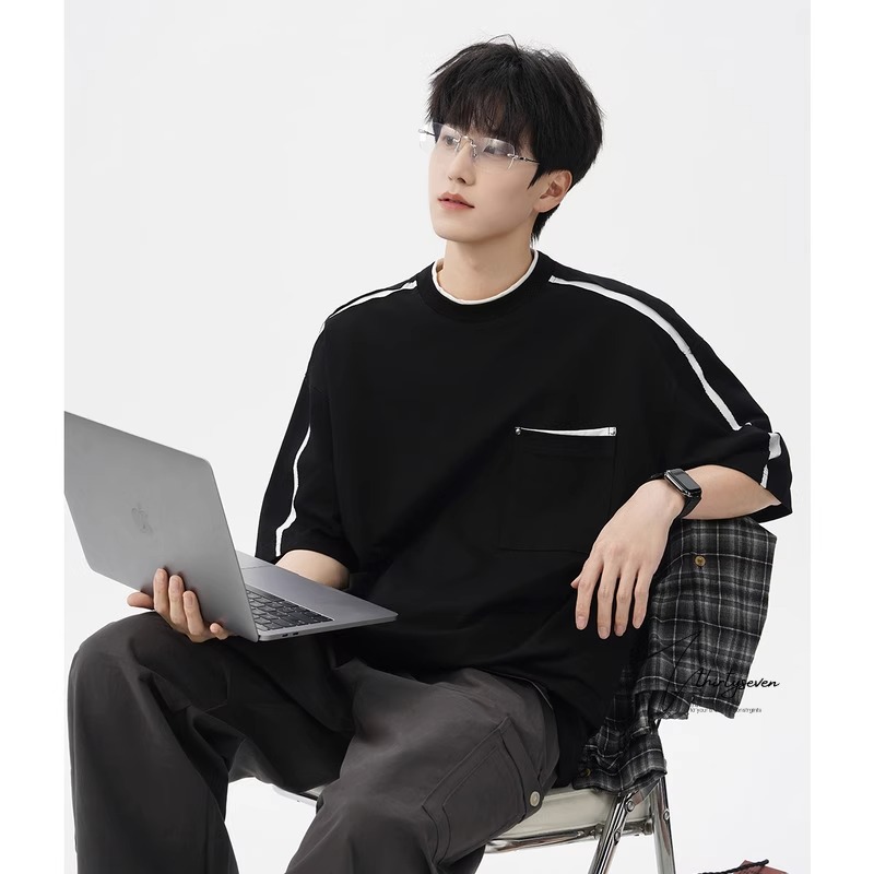 小众假两件设计感t恤男美式高街白色重磅短袖高级感cleanfit半袖