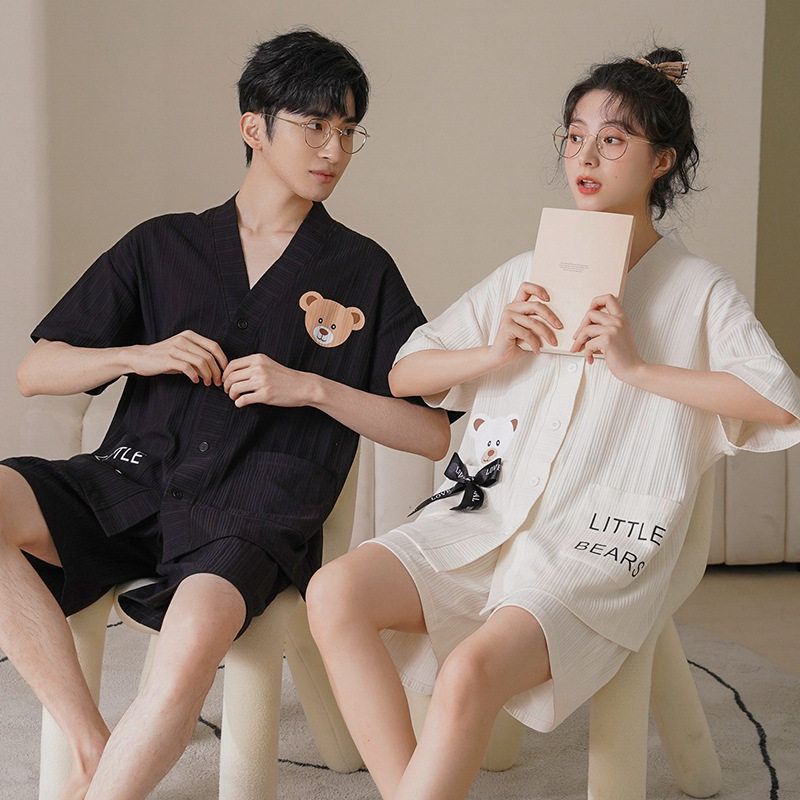 女套装和服男女短裤开衫情侣睡衣可外穿睡衣卡通短袖翻领棉质夏季