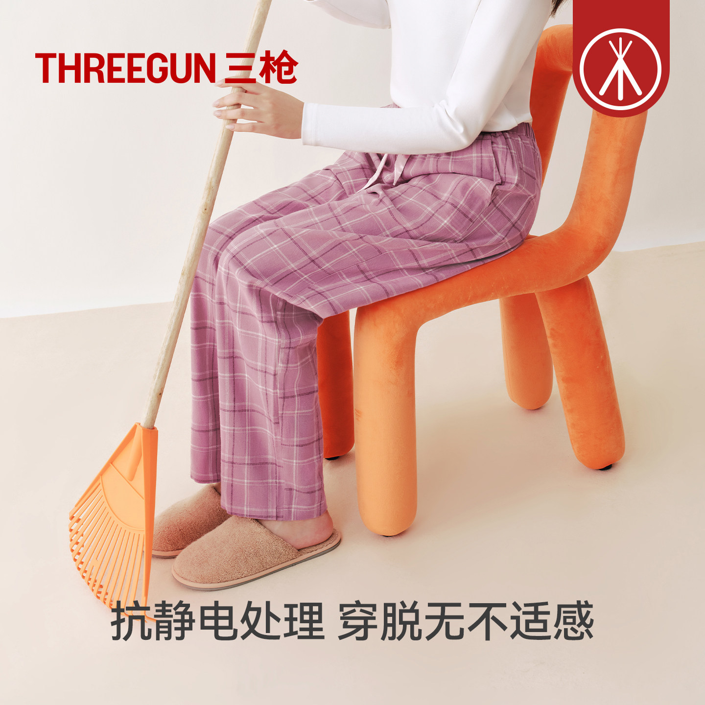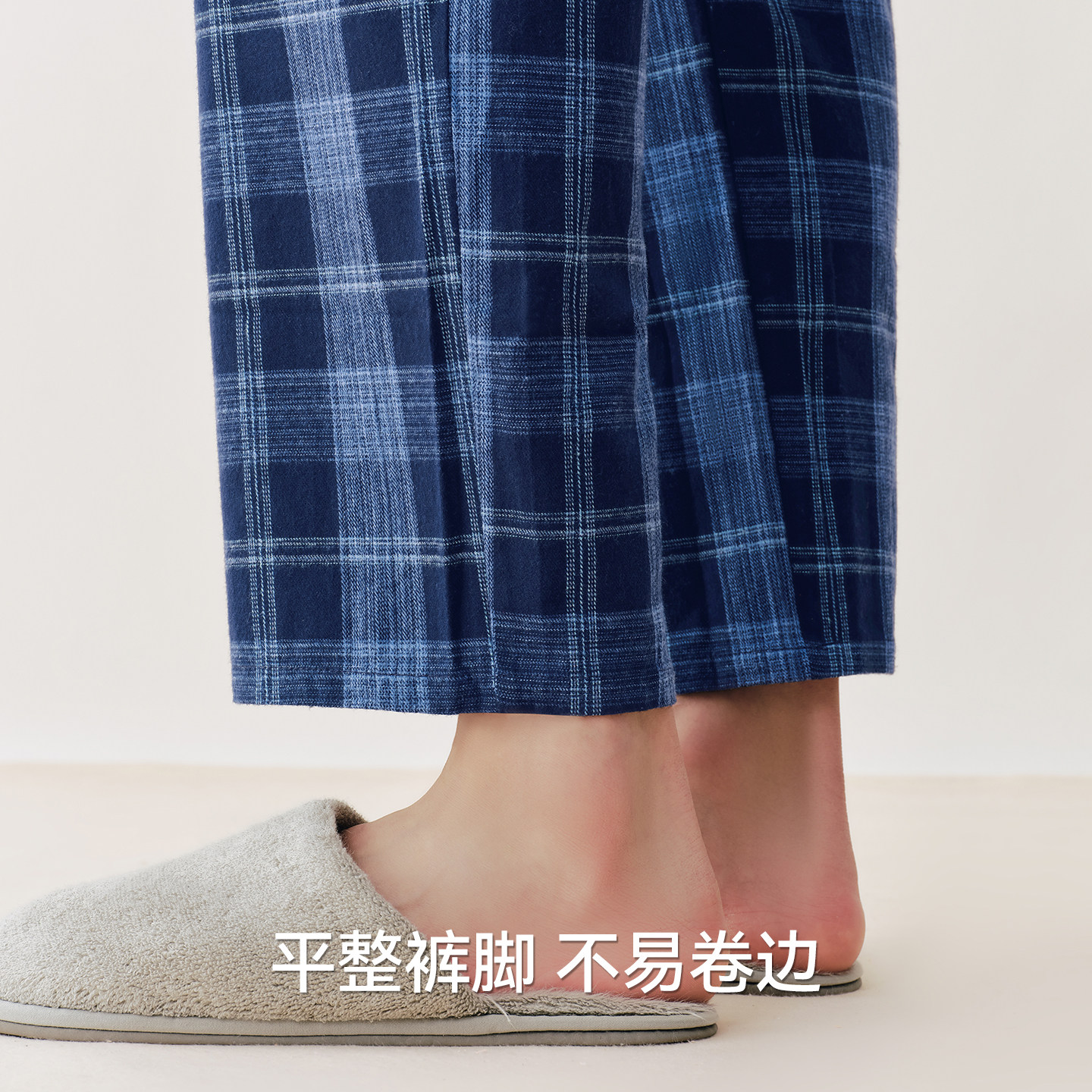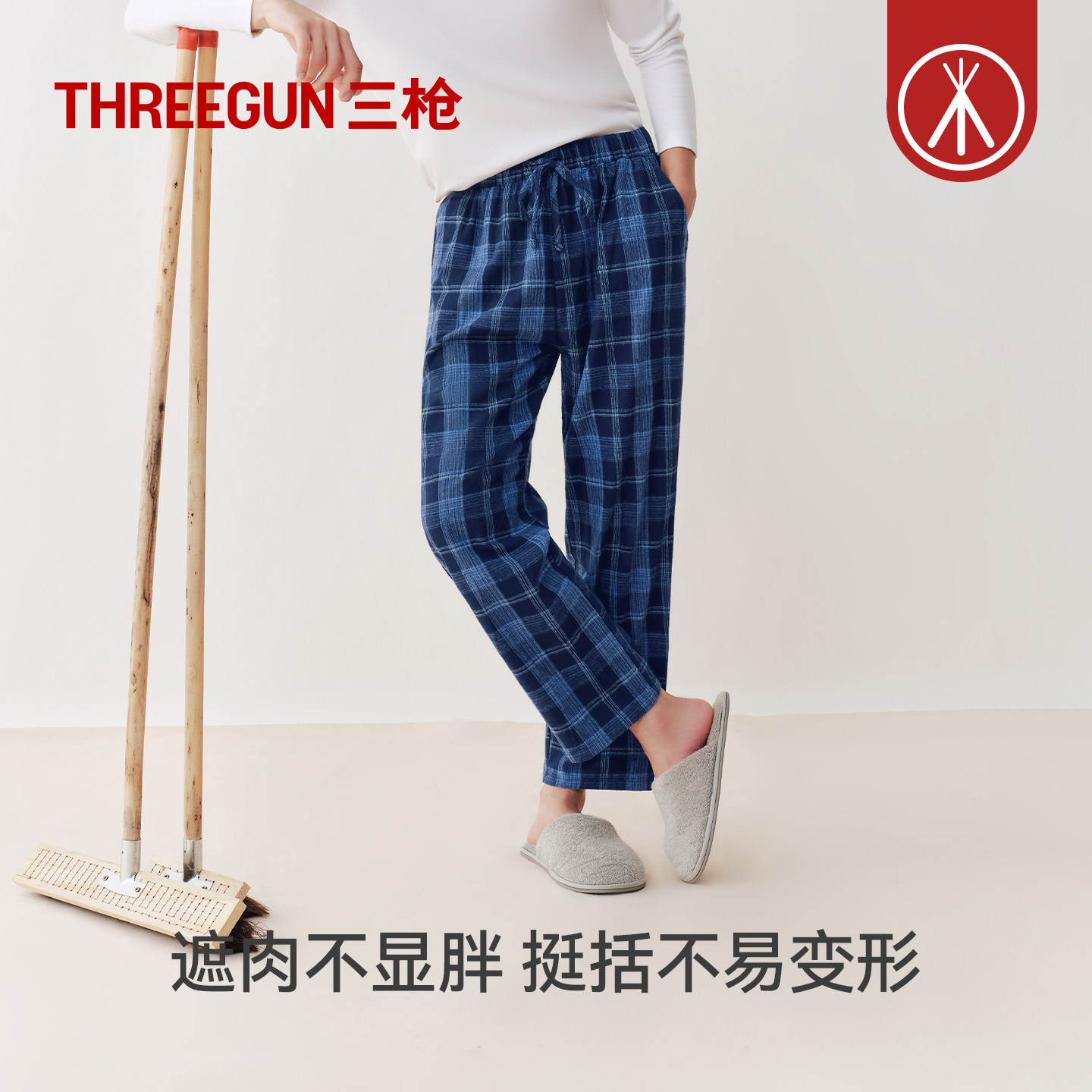 三枪纯棉情侣家居裤秋冬新品休闲格子居家长裤阔腿抗静电男睡裤女