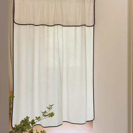 中古奶油风门帘简约复古仿棉麻隔断飘窗小窗帘短帘半帘遮挡免打孔