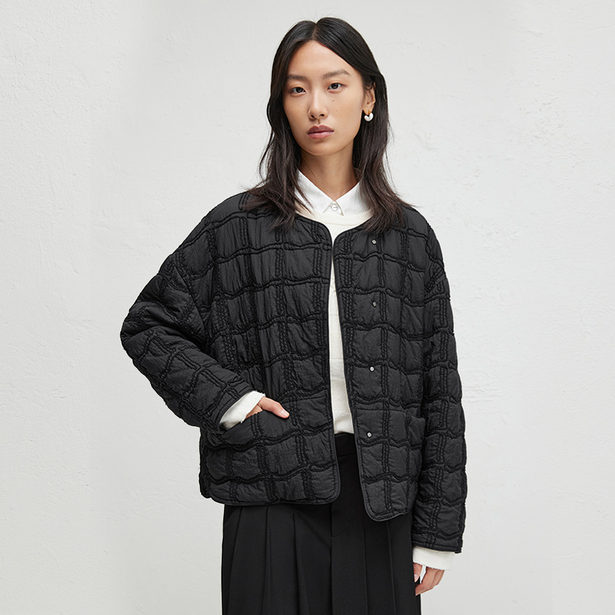 播商场同款黑色格纹绣花棉服女24春秋休闲短款外套BDR3PD3229